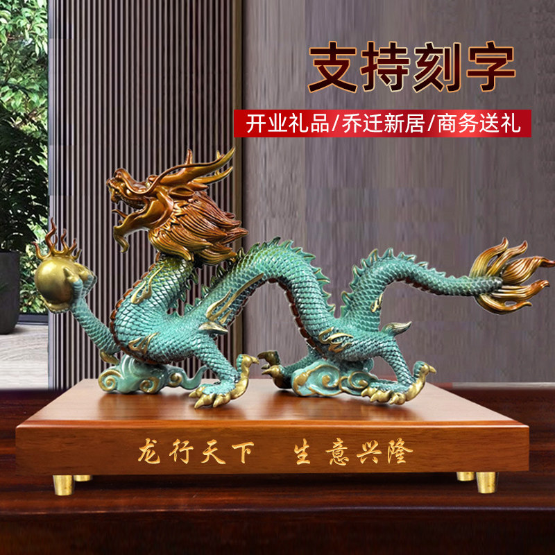 铜龙摆件黄铜祥龙青龙生肖龙吉祥物工艺品客厅2024龙年新年装饰品
