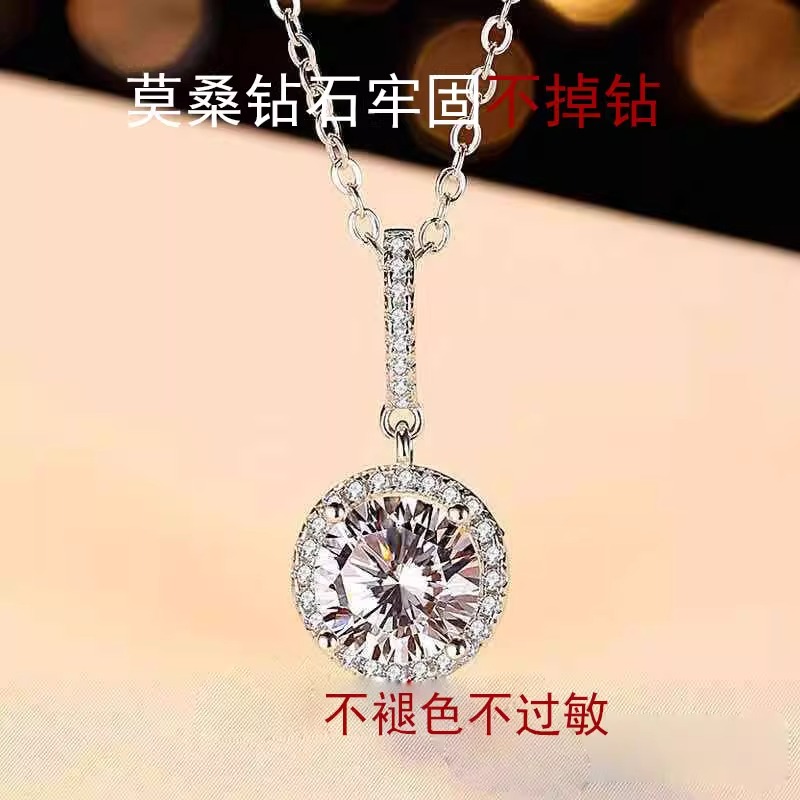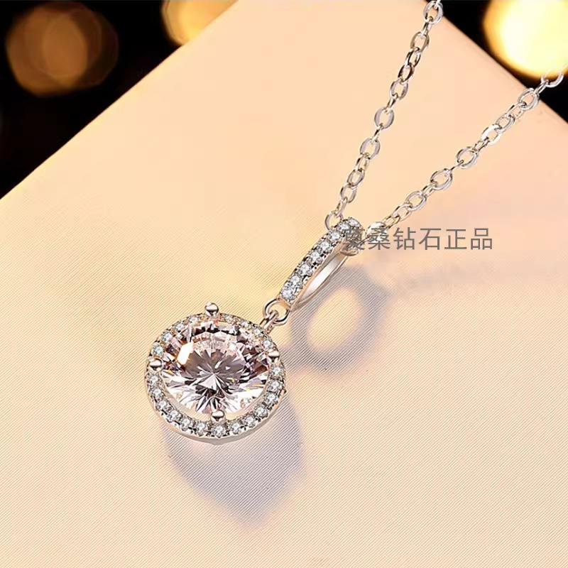 进口莫桑钻石项链PT950铂金蒲公英四爪项链1克拉2克拉吊坠锁骨链