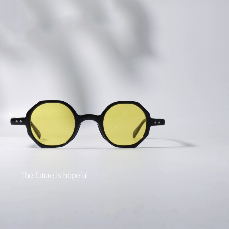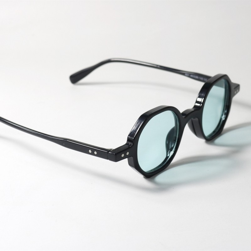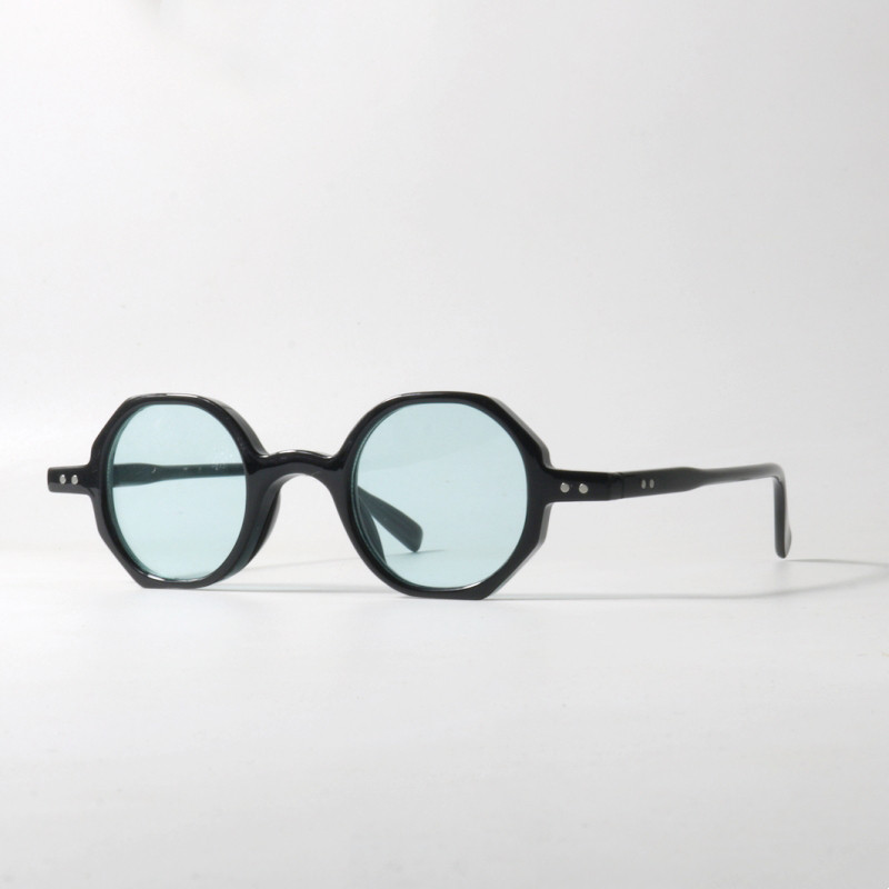 超轻日系复古风格黑框眼镜UV400防紫外线配近视小圆框湖蓝色墨镜