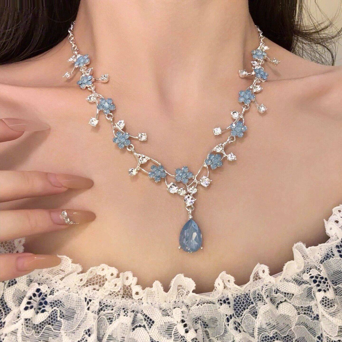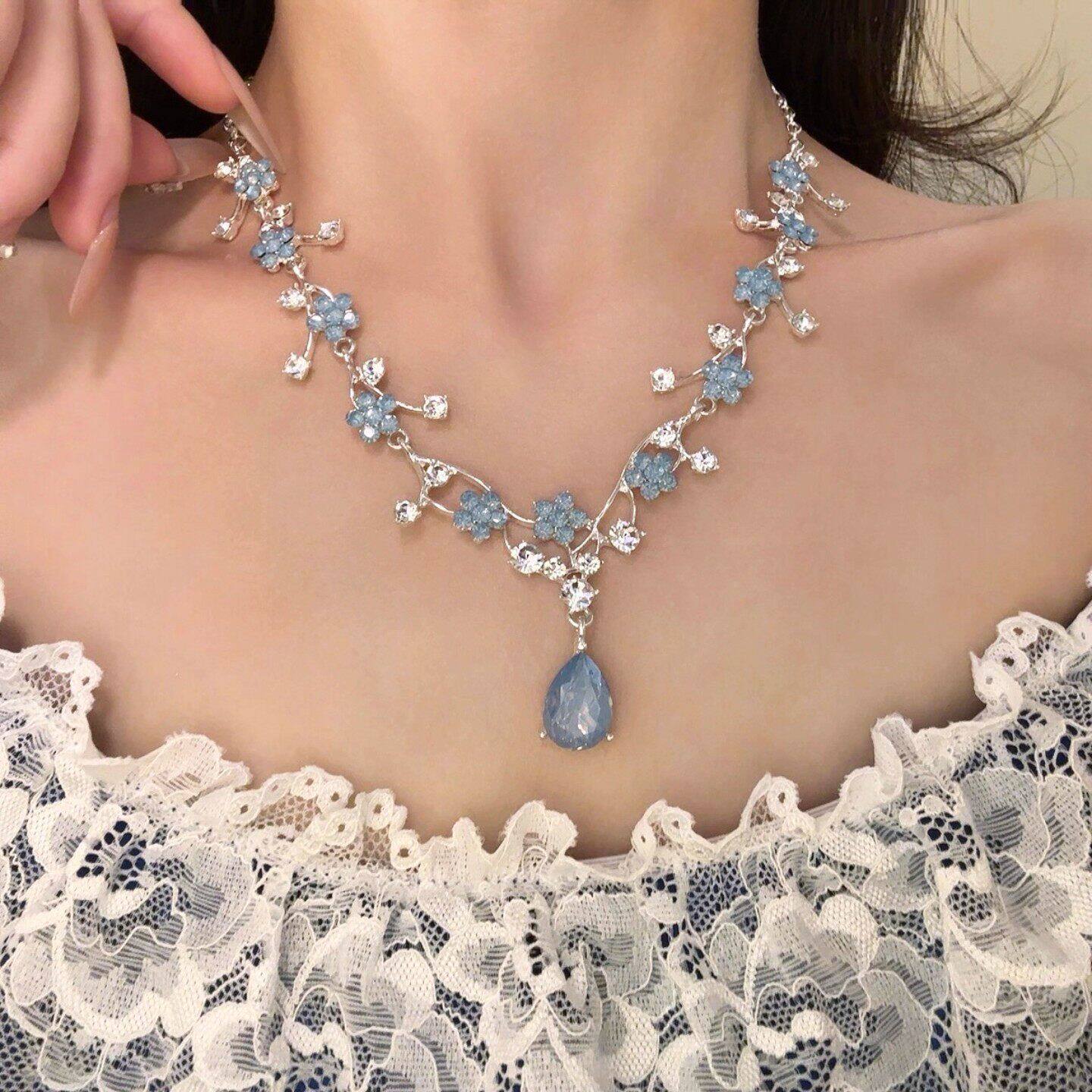 「荆棘蓝花」清冷感蓝色项链女款2026新款高级感轻奢小众锁骨链潮