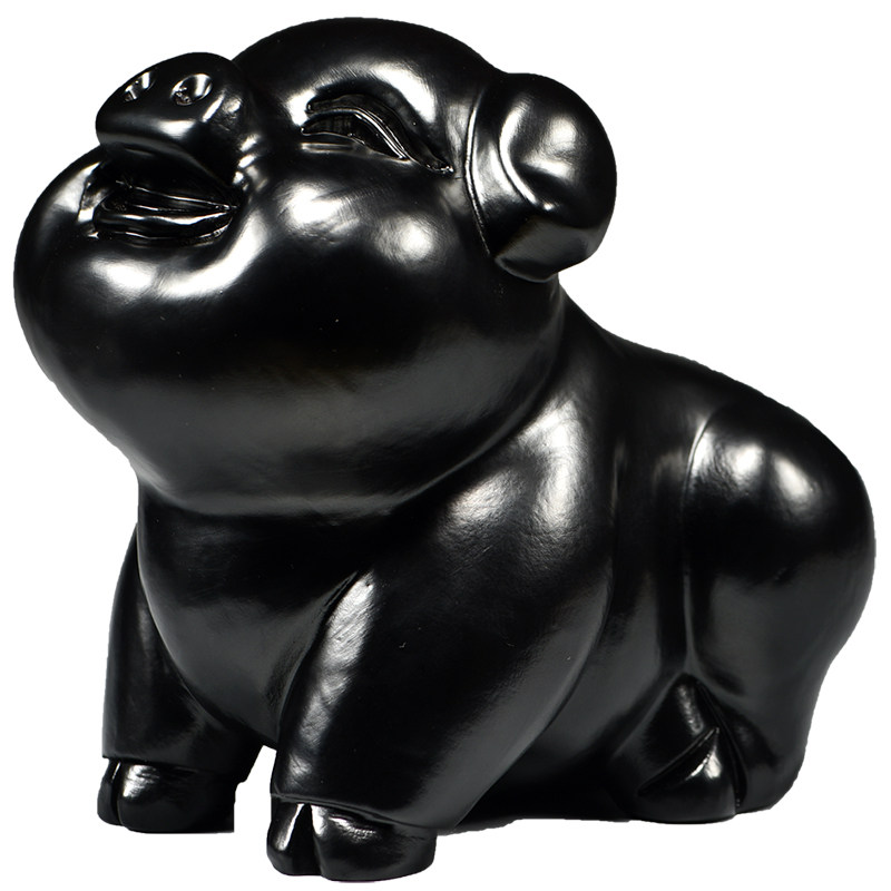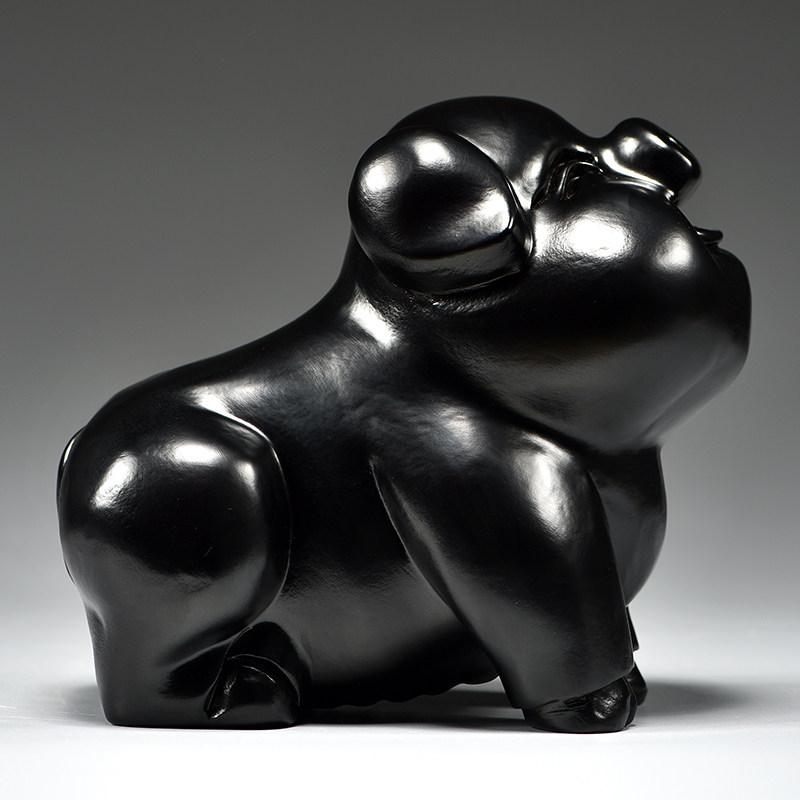 黑色实木质雕刻猪摆件十二生肖黑猪补角电视柜客厅卧室装饰工艺品