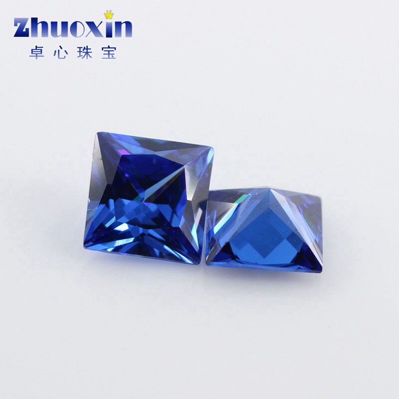 正方直角宝蓝色锆石裸石戒面 公主方人造CZ兰锆宝石戒指散珠钻