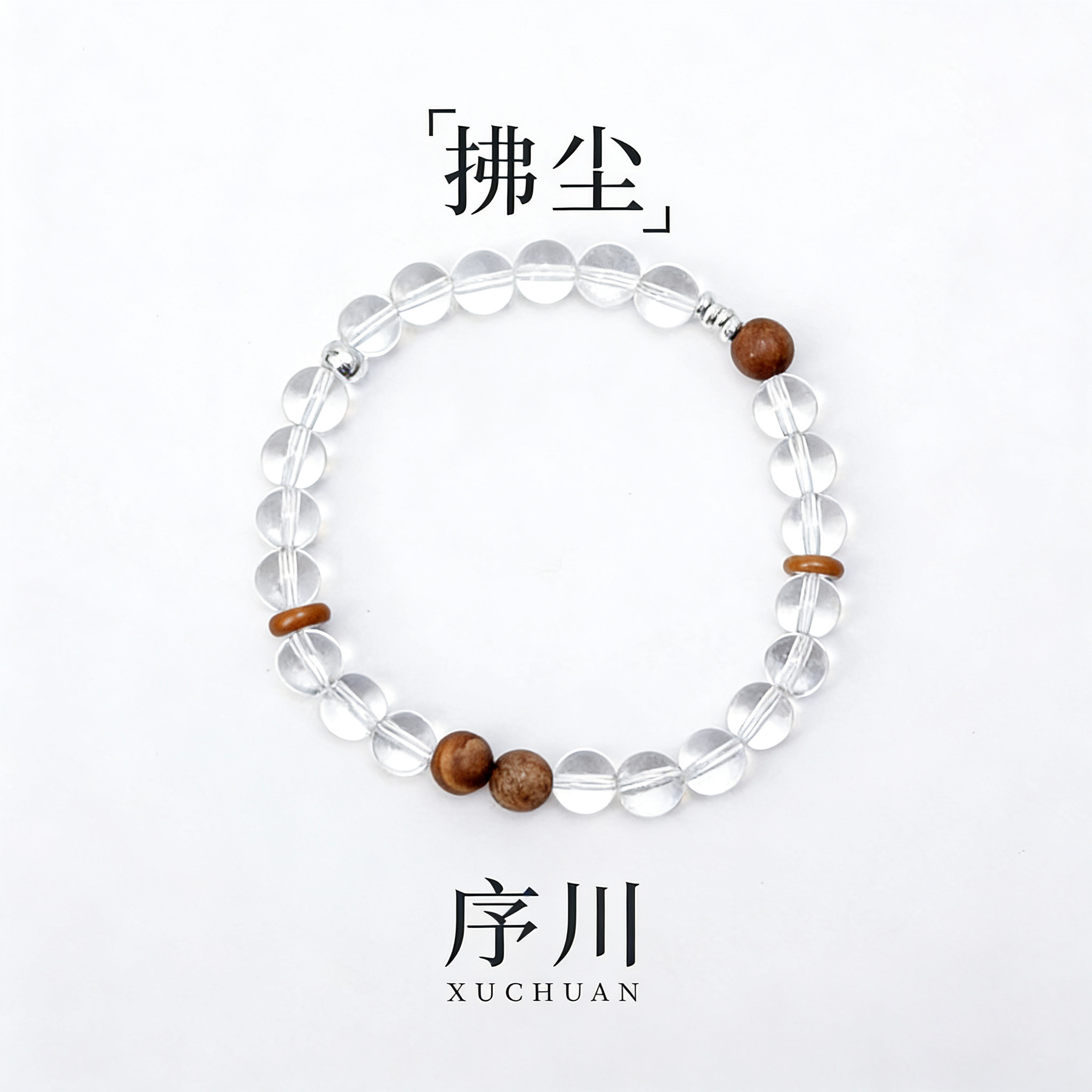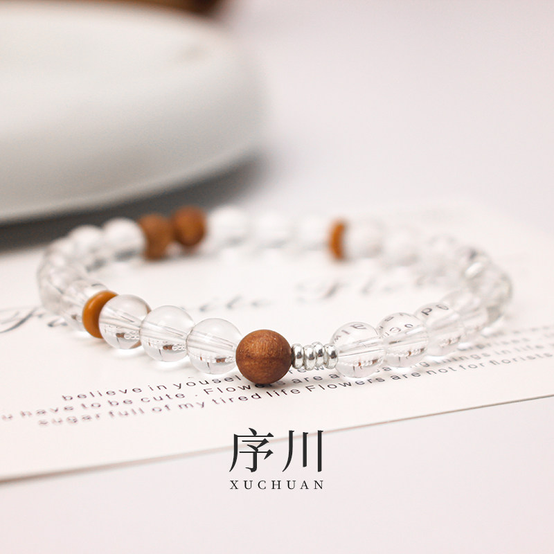 序川拂尘原创设计高冰双A白水晶老山檀手串稳定情绪清冷感手链女