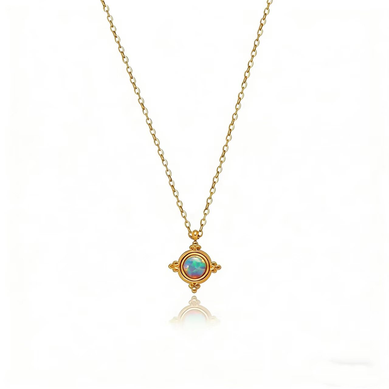 欧美风复古龙纹梦幻蓝色圆吊坠项链宝石耳钉女轻奢小众高级锁骨链