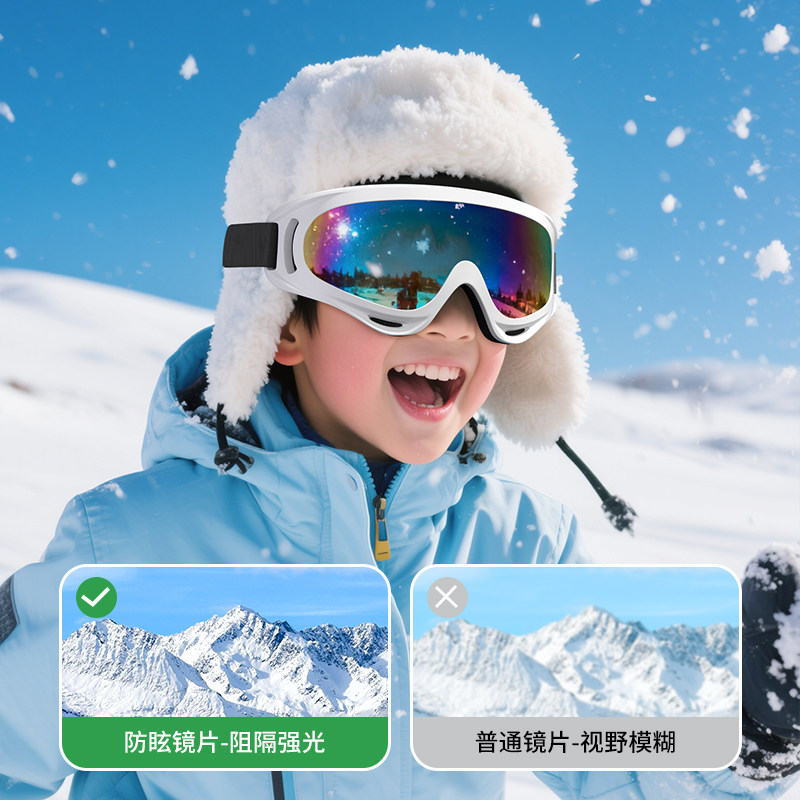 儿童滑雪眼镜雪地护目镜防紫外线防风雪镜男女童滑雪镜镜片彩色