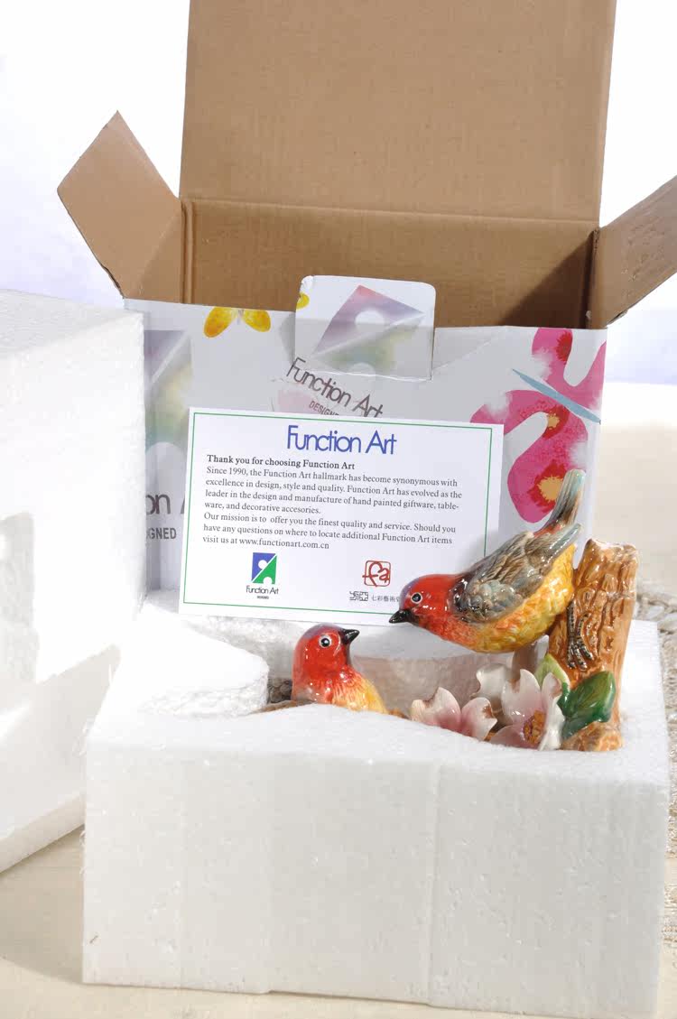 方亚比翼双飞红头山雀鸟陶瓷摆件礼品家饰品动玄关电视柜结婚饰品