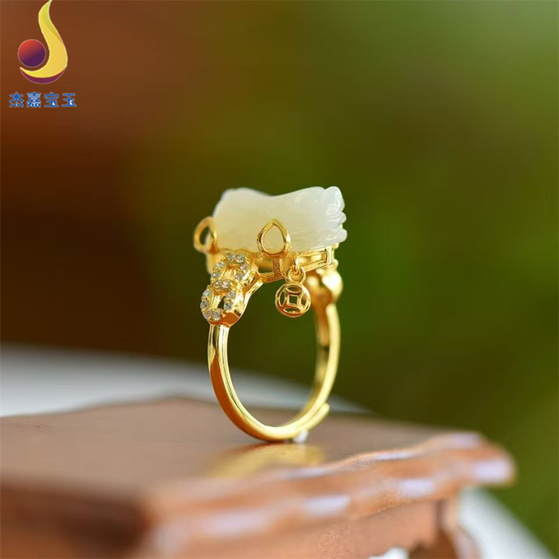 【取之不尽】和田玉貔貅戒指玉石指环开口尾戒个性女送妈妈带证书