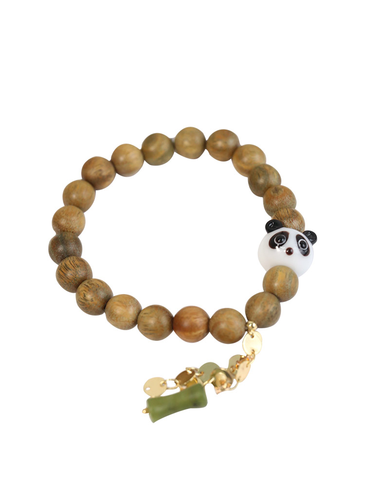 漫游记|童趣熊猫绿檀木质手串檀香手链diy原创设计情侣 文艺礼物