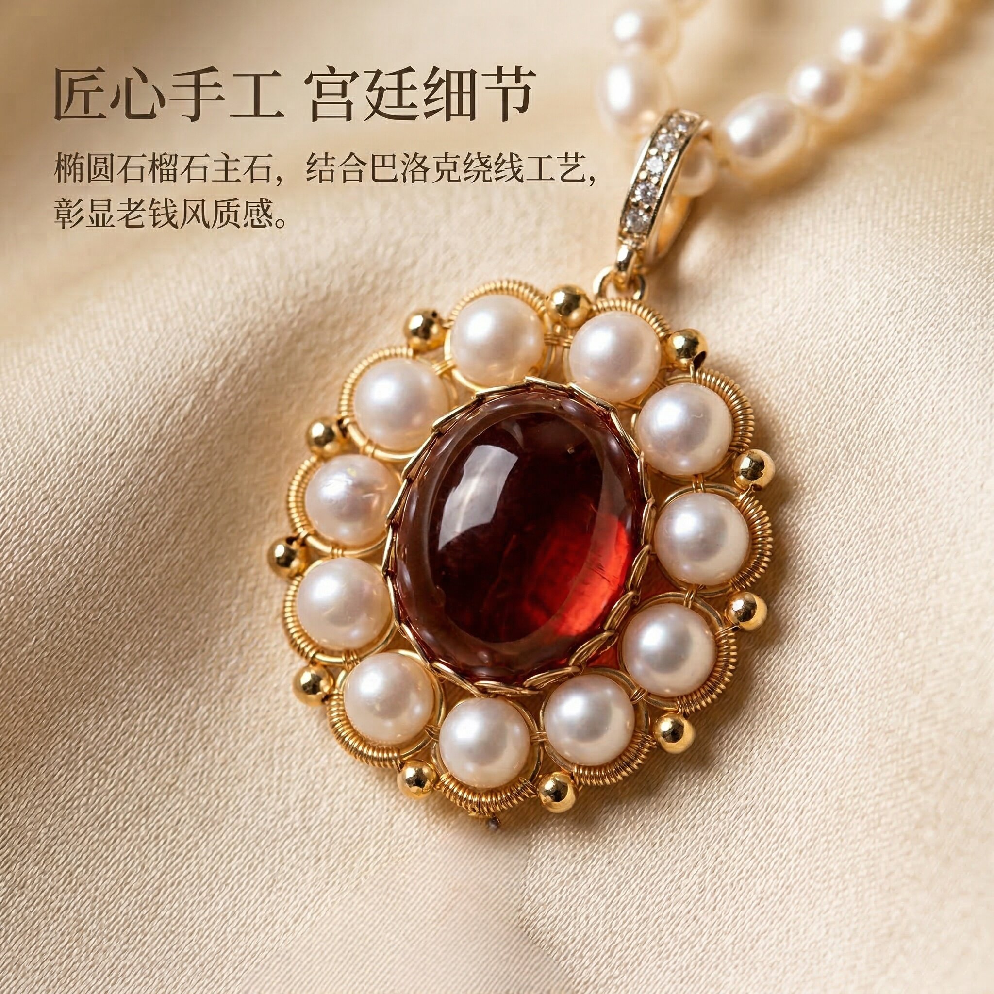 天然石榴石吊坠女高档红色宝石项链手工饰品设计款新年节日礼物