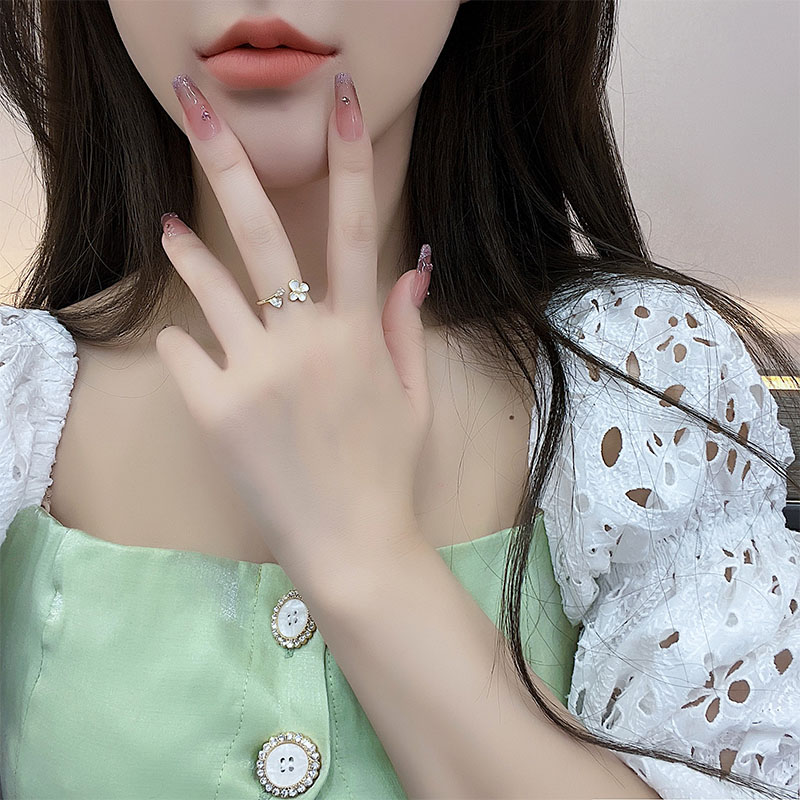 气质山茶花戒指小众设计高级感女ins潮少女感清新花朵食指戒指环