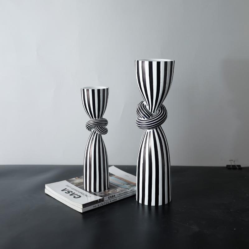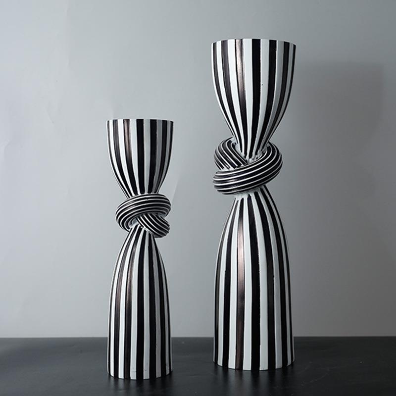 创意条纹烛台摆件家居客厅装饰品树脂工艺品办公室装饰酒柜高级感