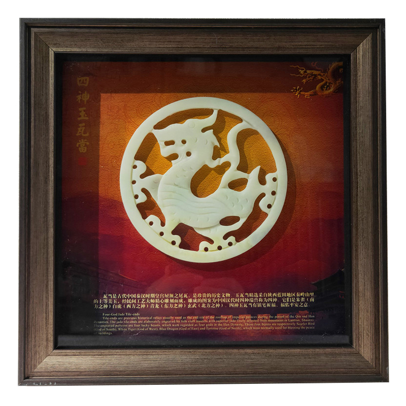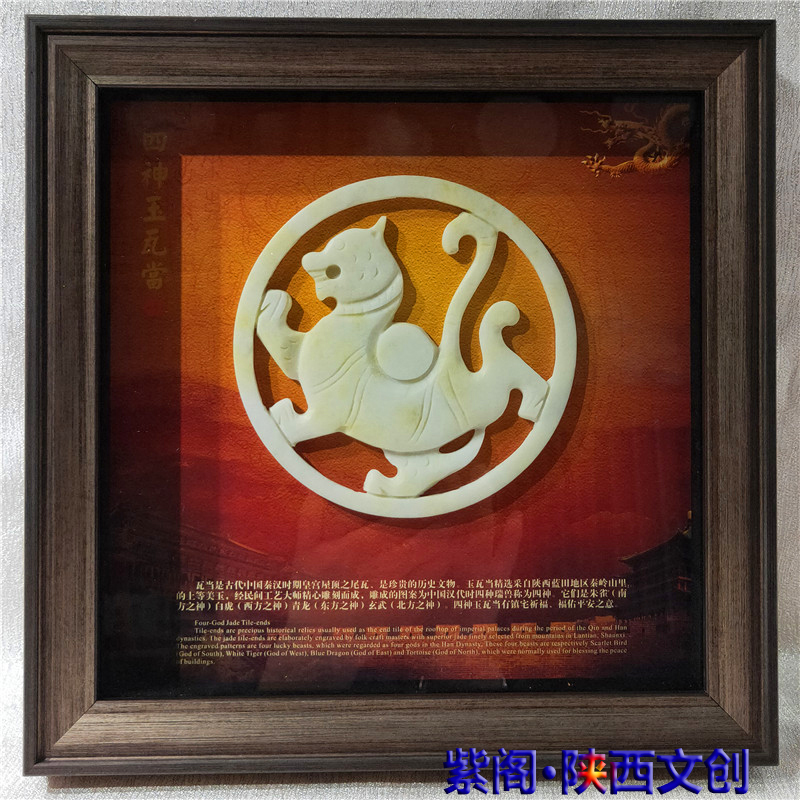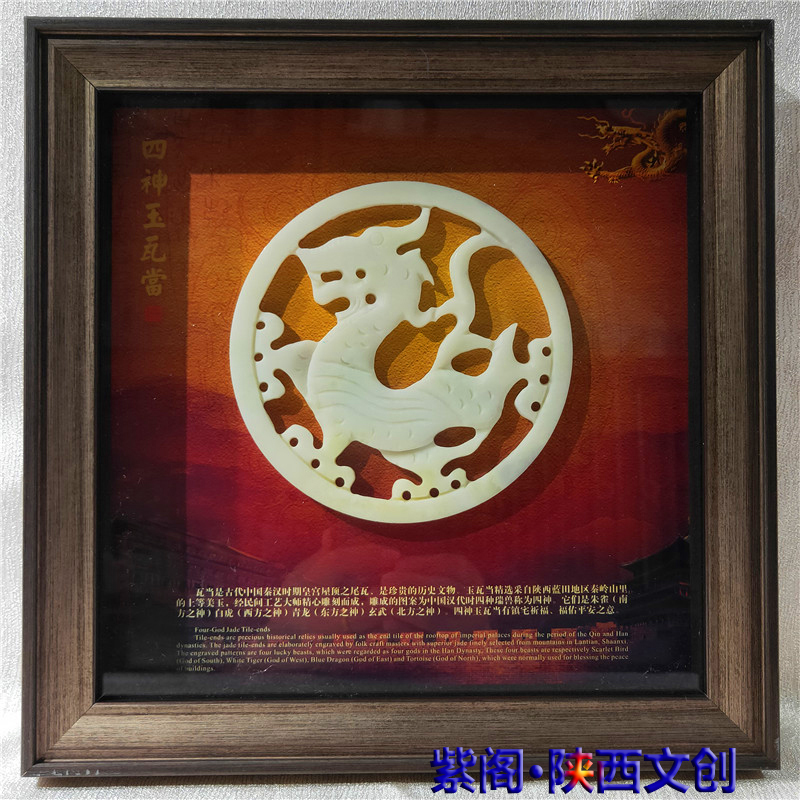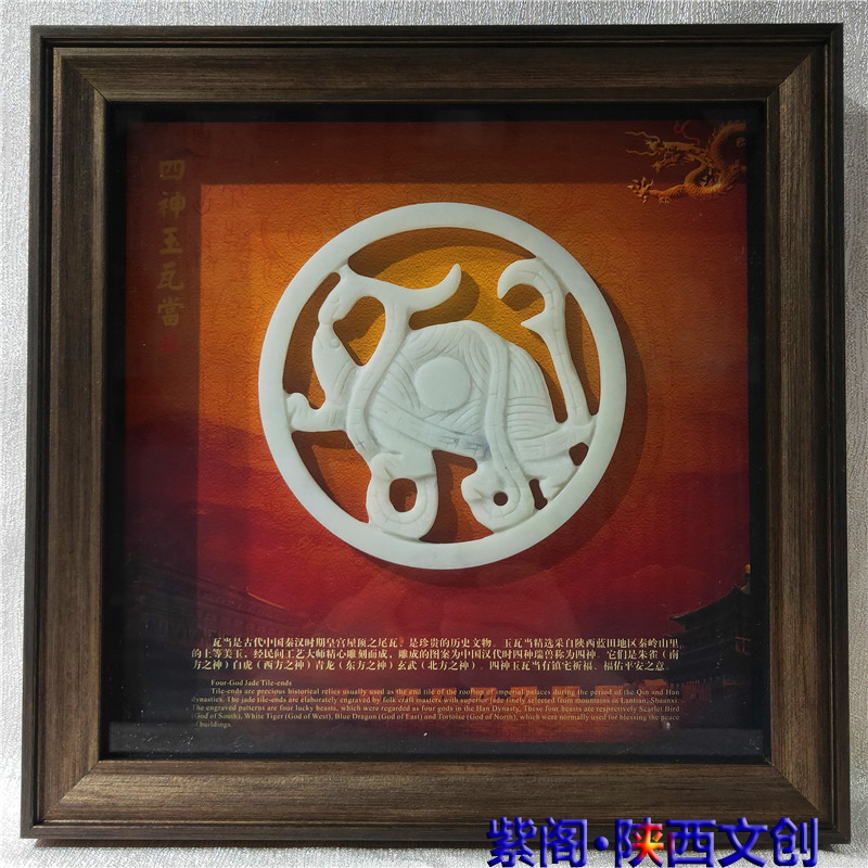 陕西天然蓝田玉雕桌面摆件四神兽瓦当收藏客厅书房办公室简约现代