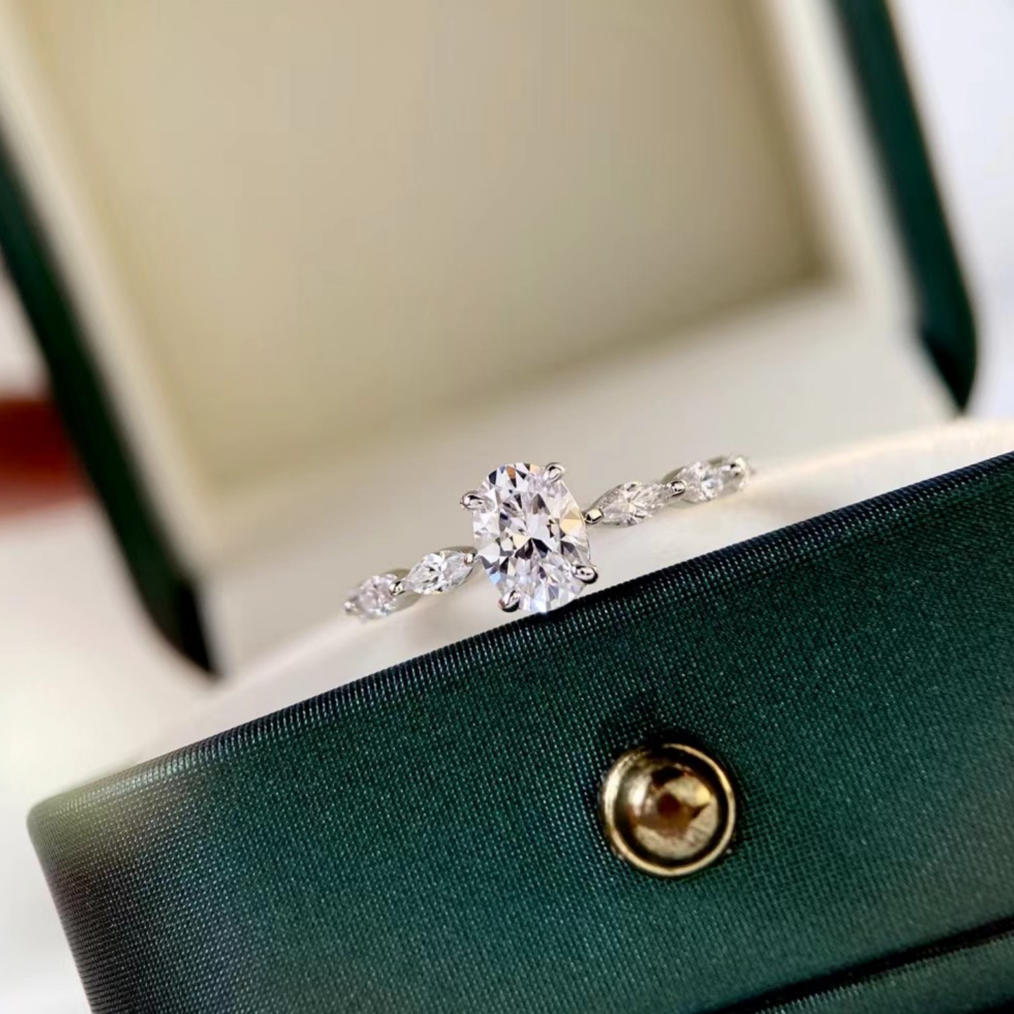 闪耀星辰四爪75分椭圆蛋形仿真钻戒指女925银镀金时尚百搭小钻戒