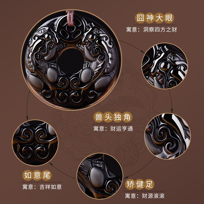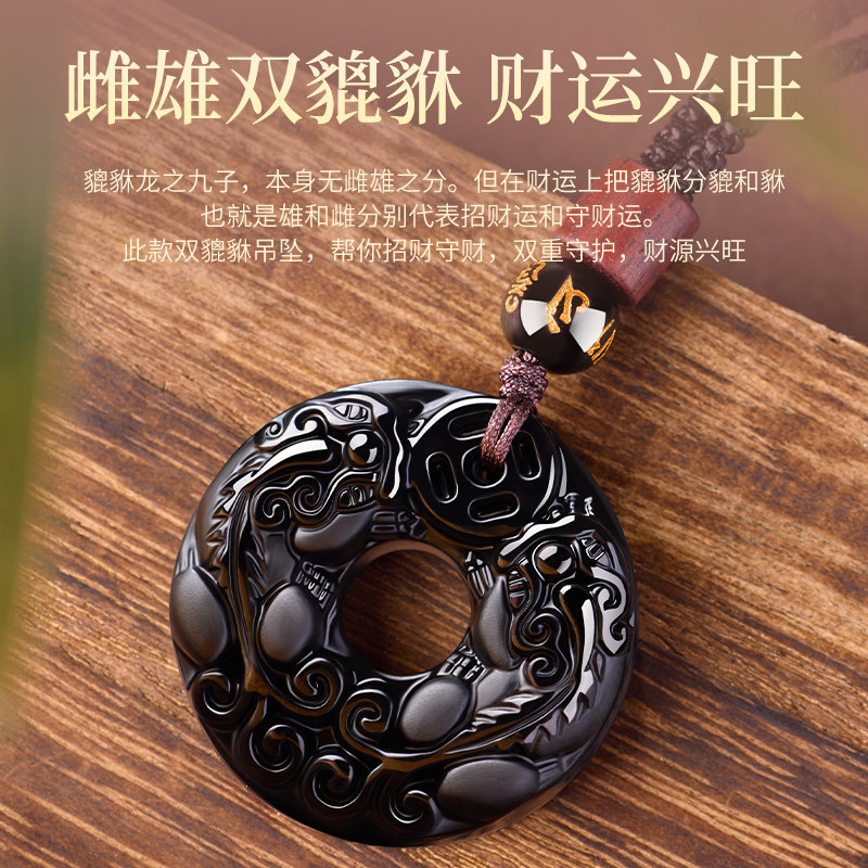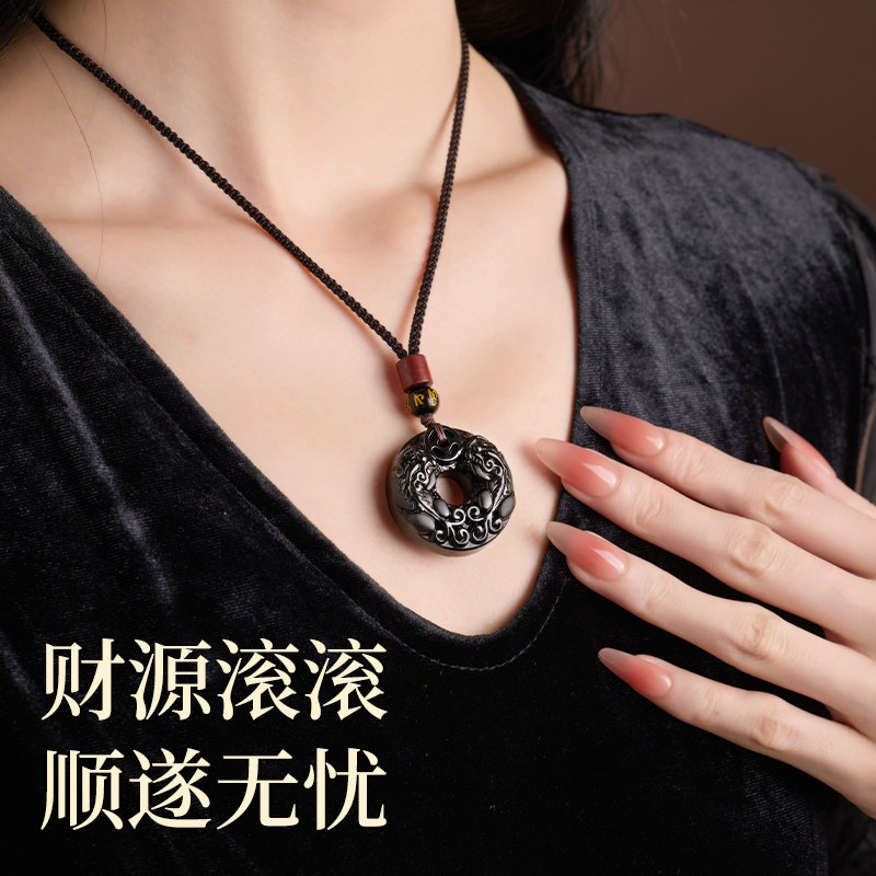 天然黑曜石平安扣吊坠男士招财貔貅女款项链本命年护身符挂件礼物