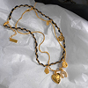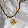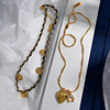 法式复古皮革金色花朵爱心项链女2026新款叠戴颈链锁骨链轻奢小众