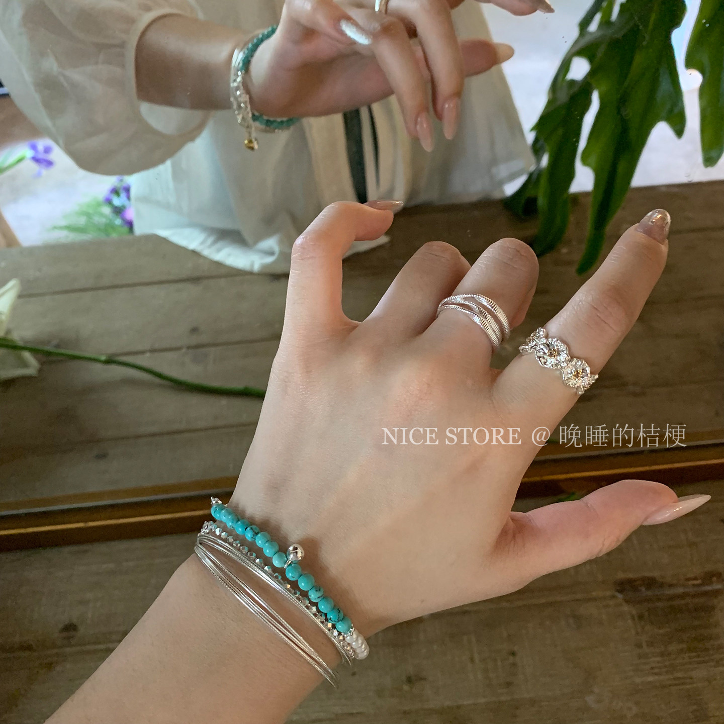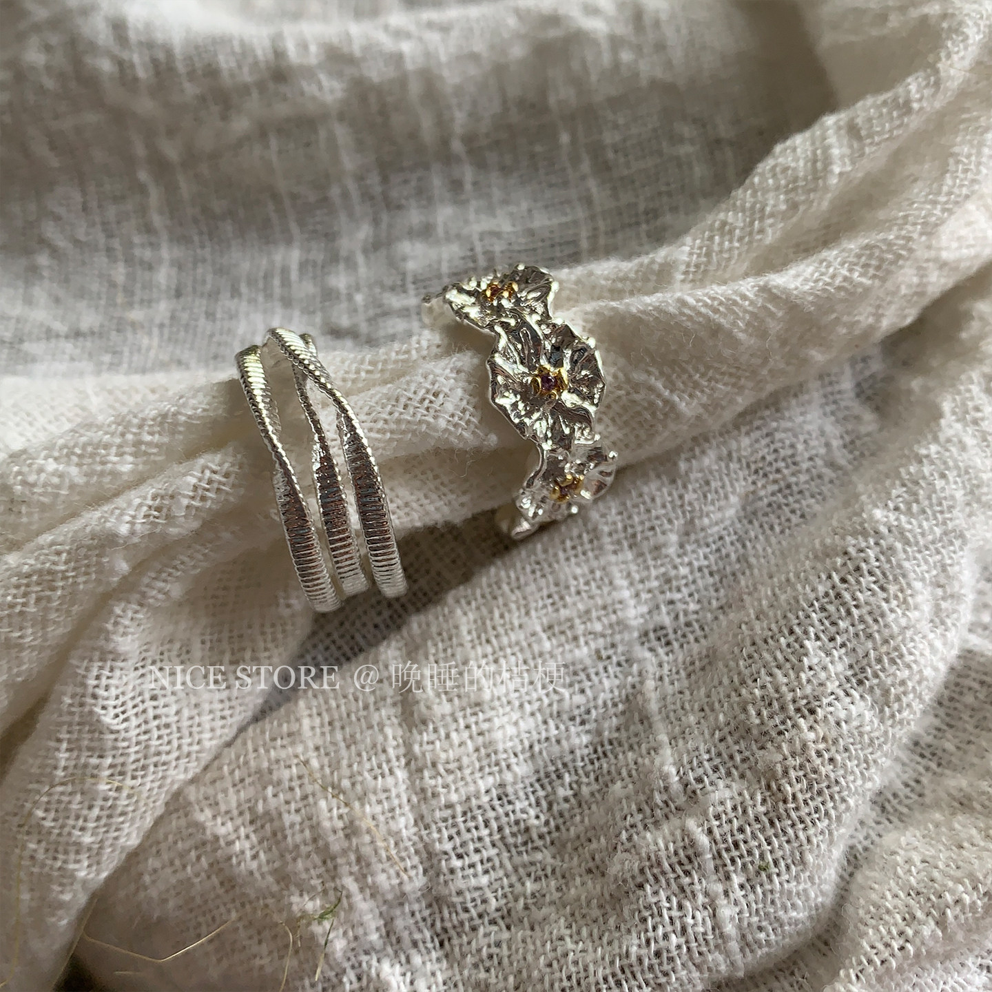 晚睡的桔梗「池荷泠」复古多圈开口素戒指女高级感食指戒叠戴指环