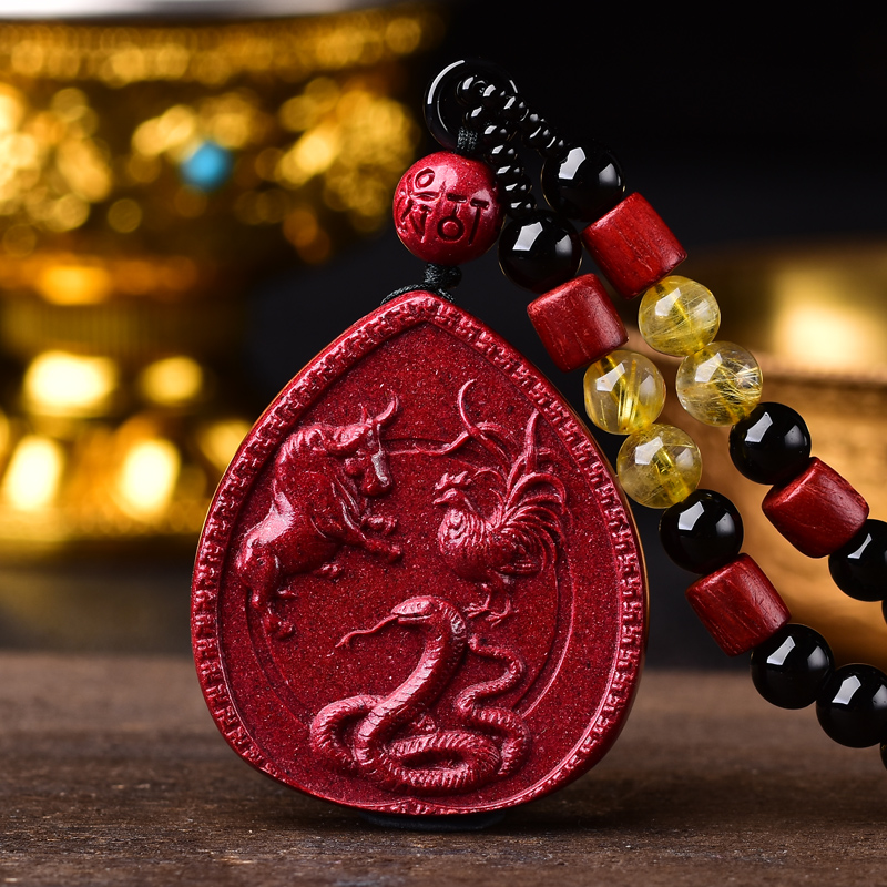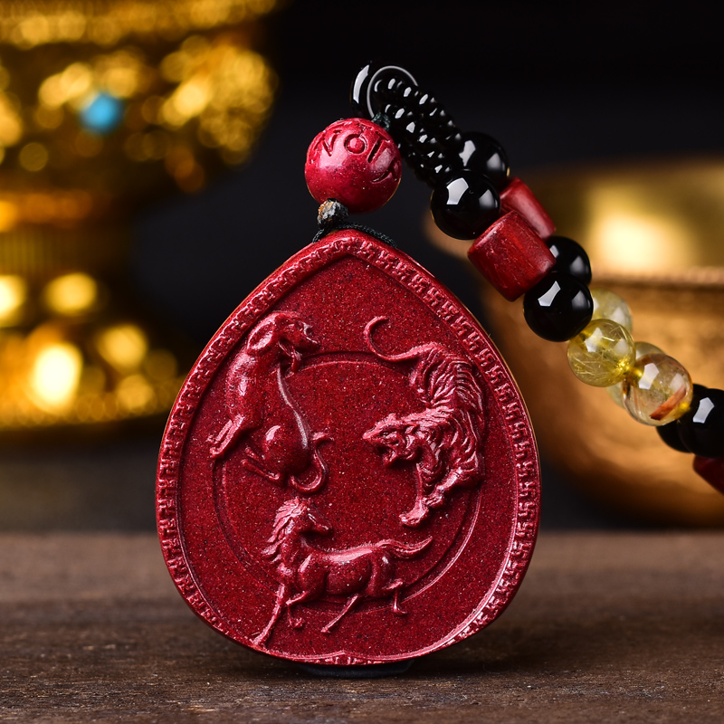 2026马年吉祥物朱砂本命年三合吊坠生肖龙蛇马羊牛兔狗男女项坠