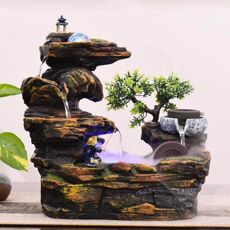 假山流水喷泉摆件客厅玄关山水桌面循环水景小桥上水石风水轮造景