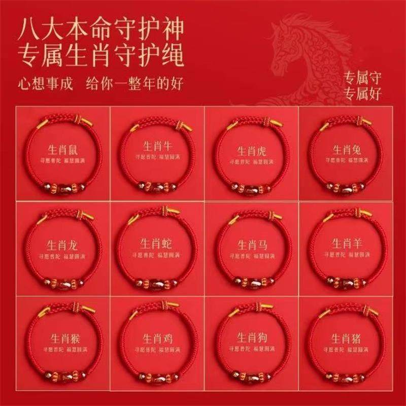2026马年本命年牛兔狗太岁化红绳手绳男女红色人工编织绳玛瑙手链