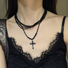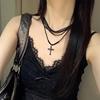 暗黑公主风十字架多层叠戴项链甜酷朋克风黑色串珠颈链个性锁骨链