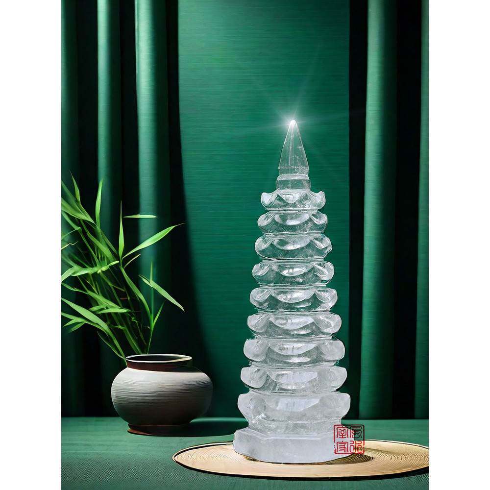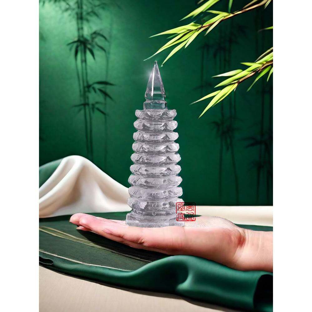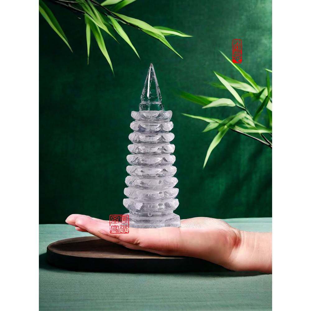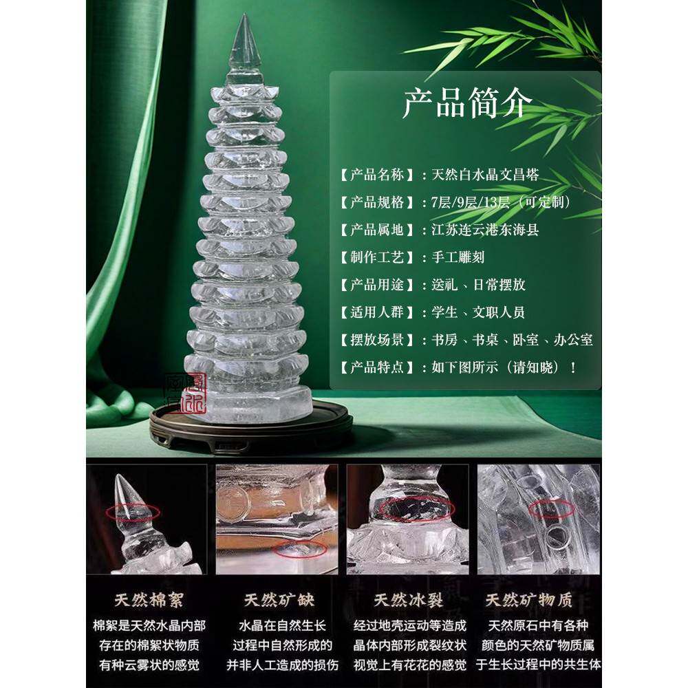 真正的天然白色水晶文昌塔9-13层连云香港东海水晶学生桌原石雕刻