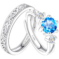 999纯银伦敦蓝宝石天然蓝色托帕石银戒指女情侣款女戒单戒高级感