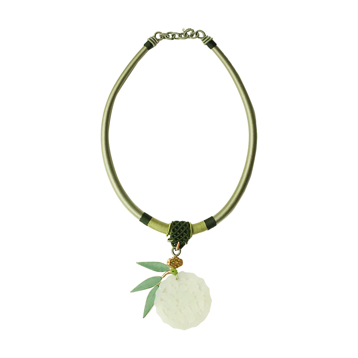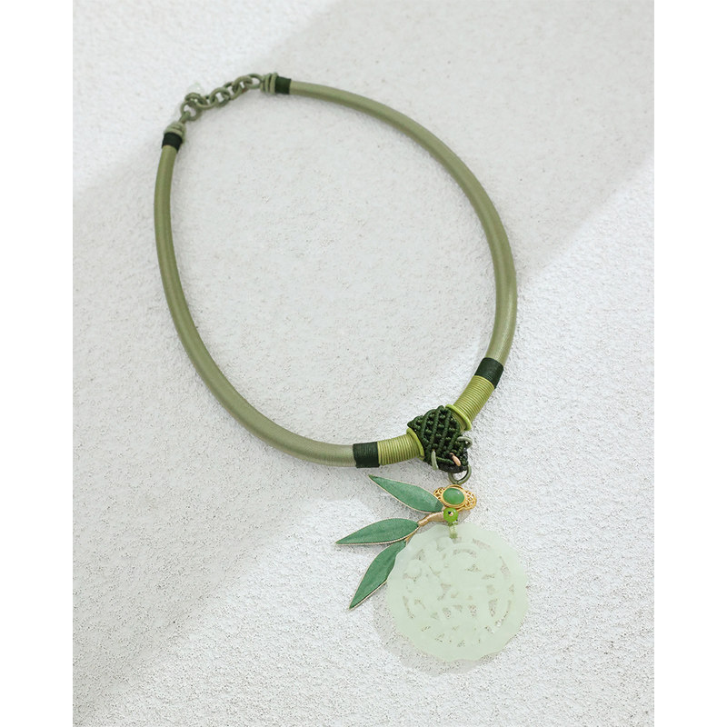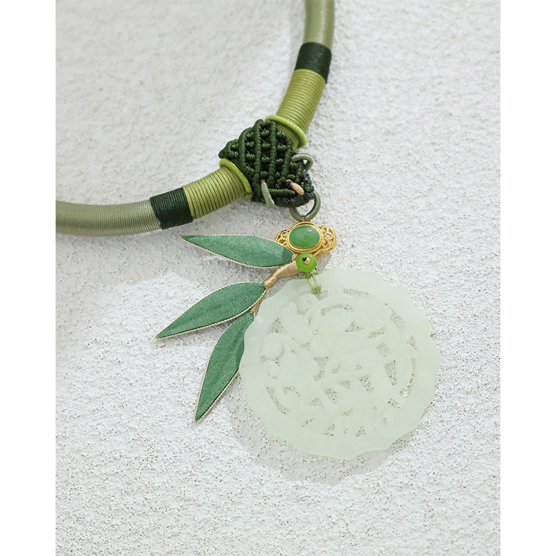 KAKA新中式国风喜上眉梢岫玉牌掐丝绒花竹叶手编项链绳项圈颈链女