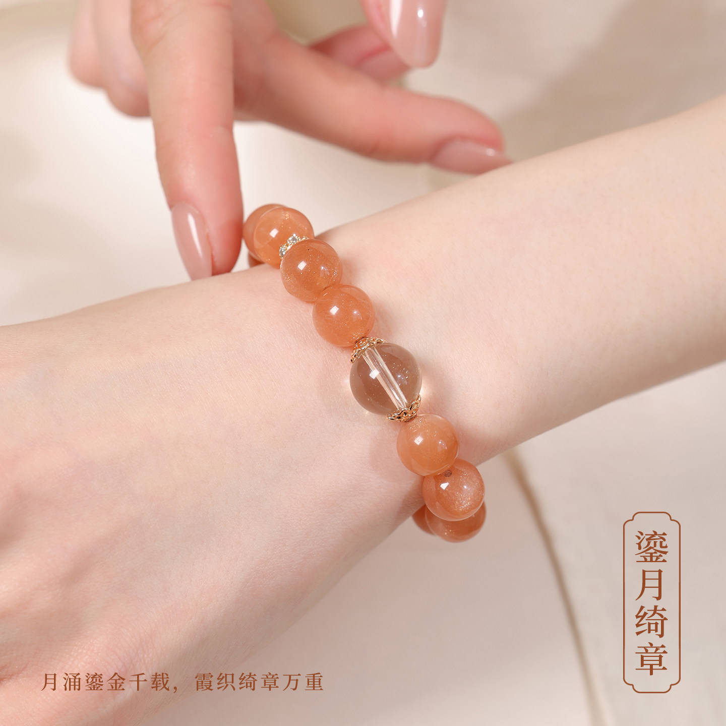 天然7A收藏级满金沙太阳石手串橙色月光石手链拉长石白水晶送女友