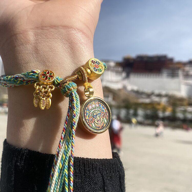 西藏唐卡手绳绿度母手串扎基拉姆手链扎基手绳财神生肖太岁黄财神