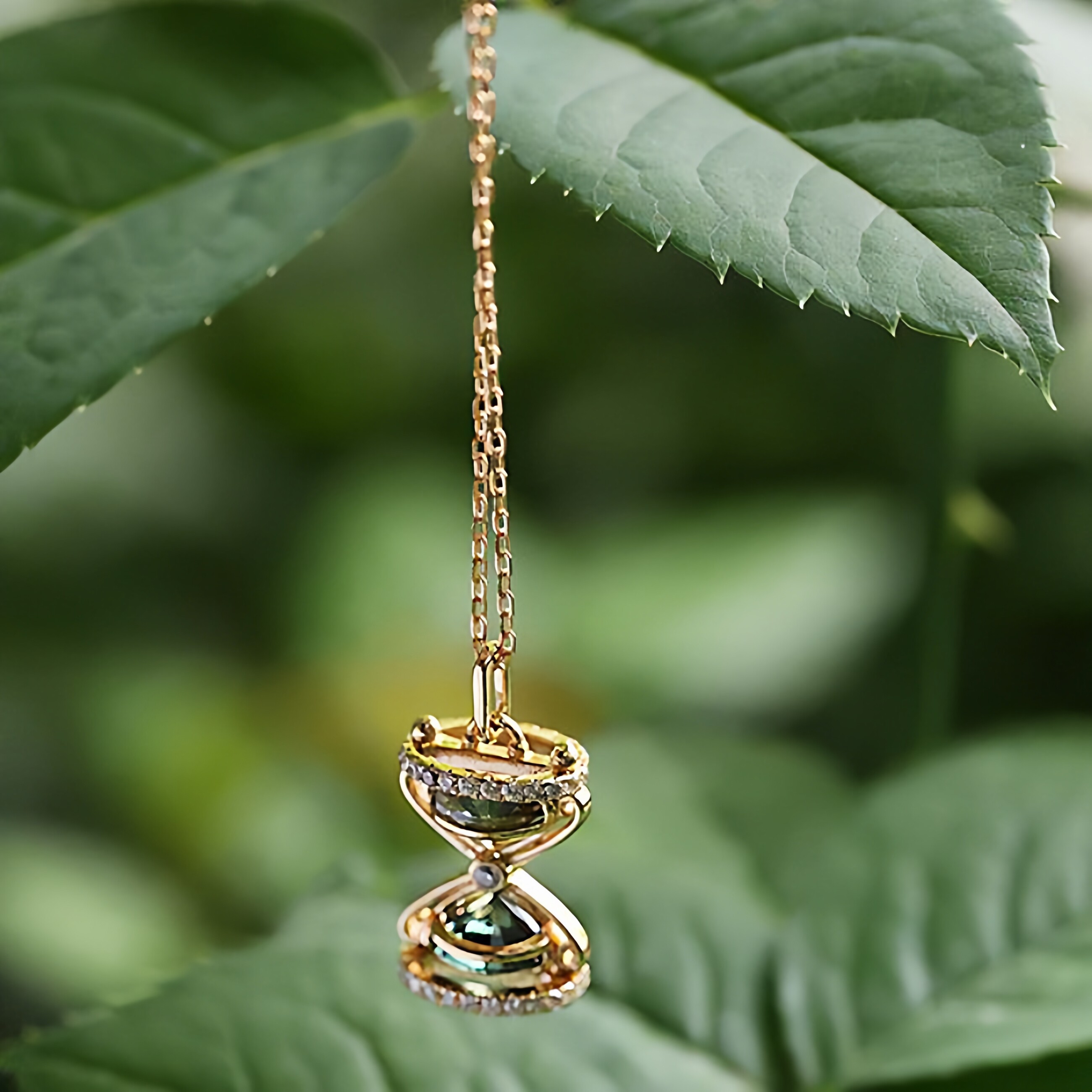 原创《时光碎片》925纯银3D立体沙漏项链设计感吊坠礼物 波特兰绿