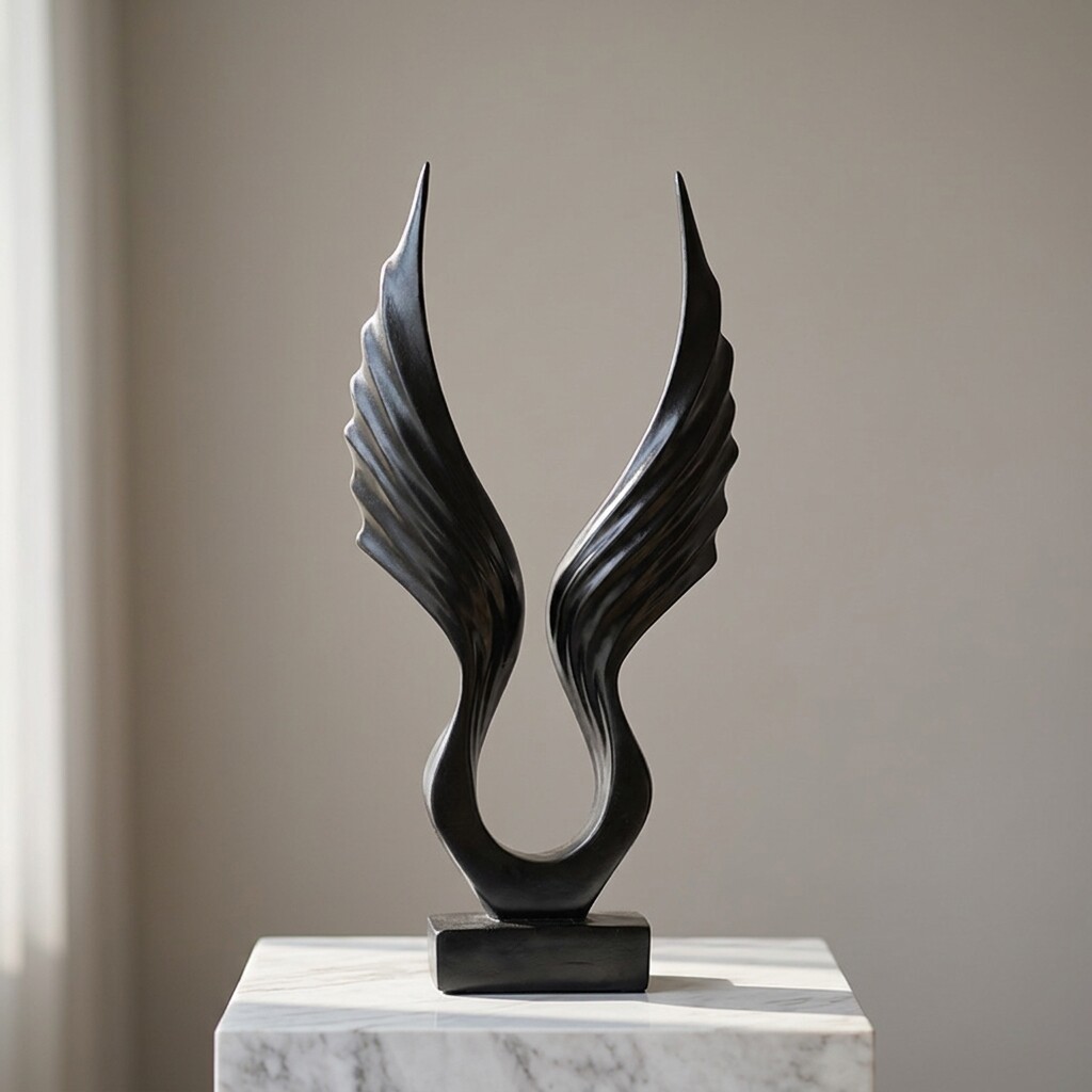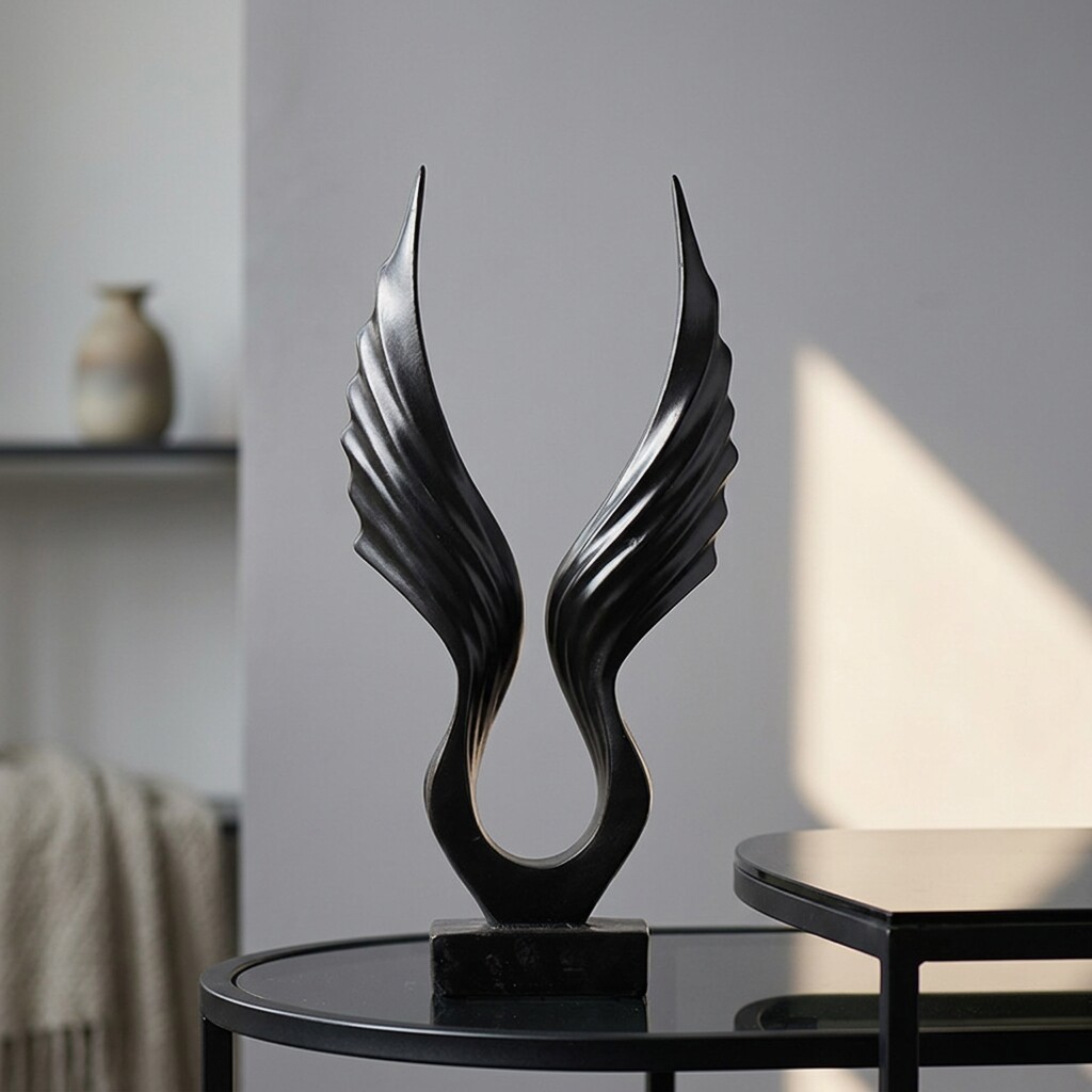 现代简约抽象翅膀装饰摆件客厅书房艺术雕塑黑色树脂工艺品