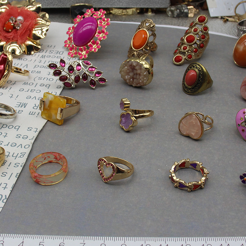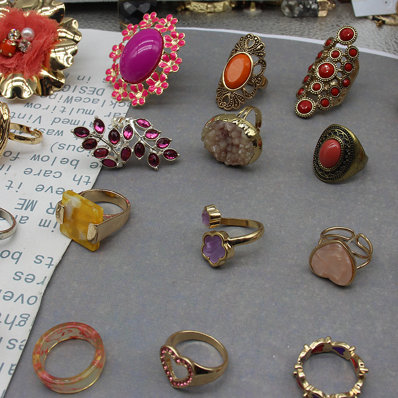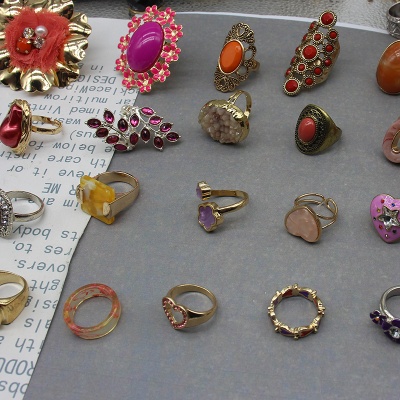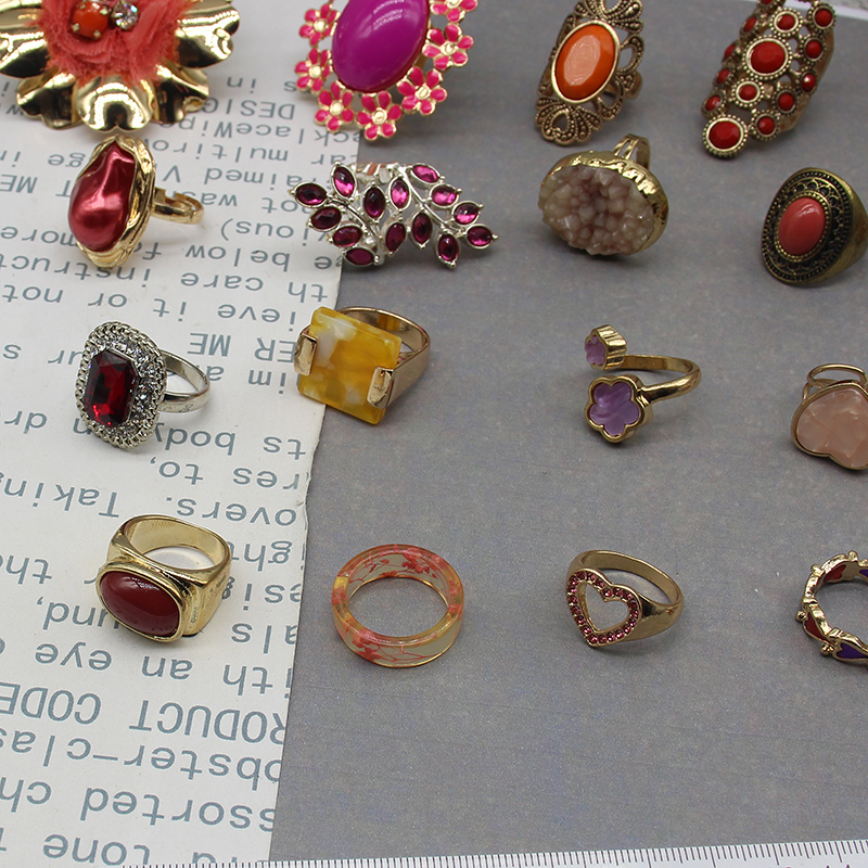 个性Y单出口尾货欧美红色紫色橙色系树脂花夸张女戒指首饰 独款