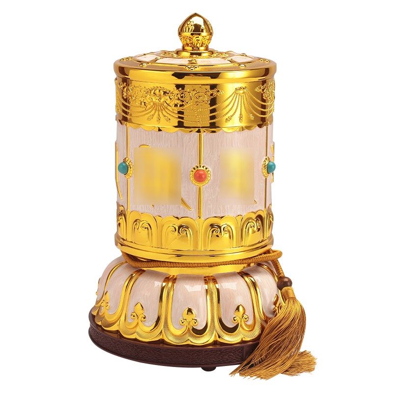 德田转轮福慧宝藏族转经简电动转金轮锌合金彩绘藏式转筒家用摆件