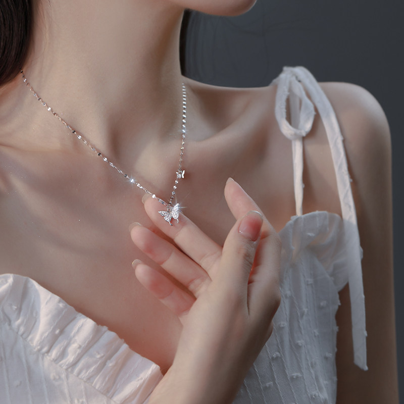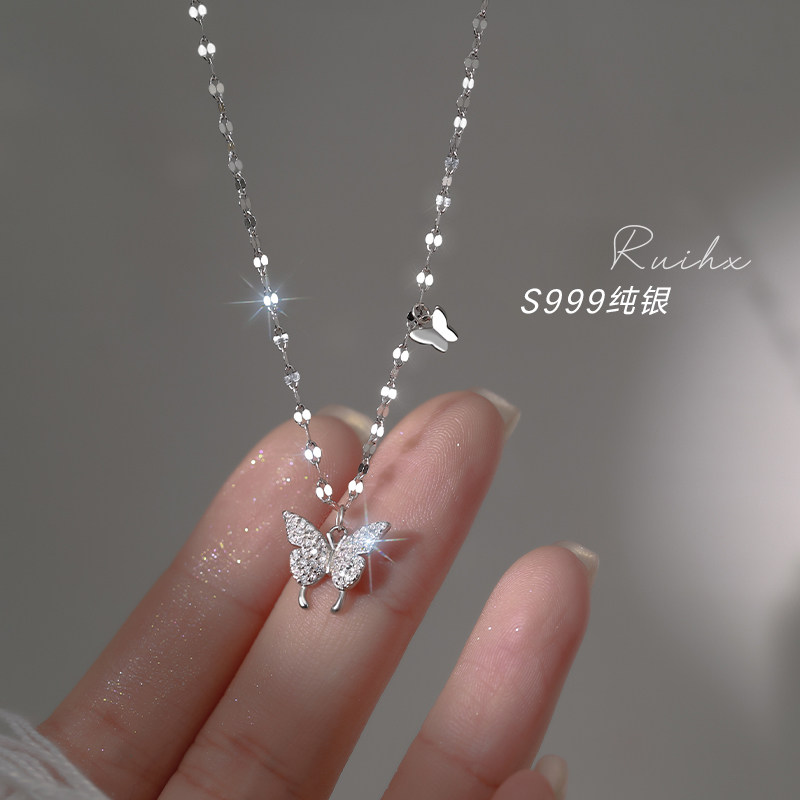 999纯银项链女蝴蝶结轻奢小众高级感锁骨链2026年新款爆款送女友