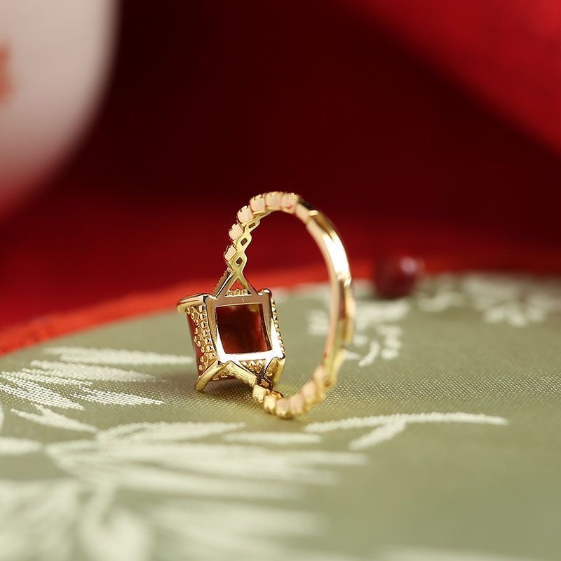 新款小方糖树莓红锆石戒指女镀黄色复古轻奢高级感