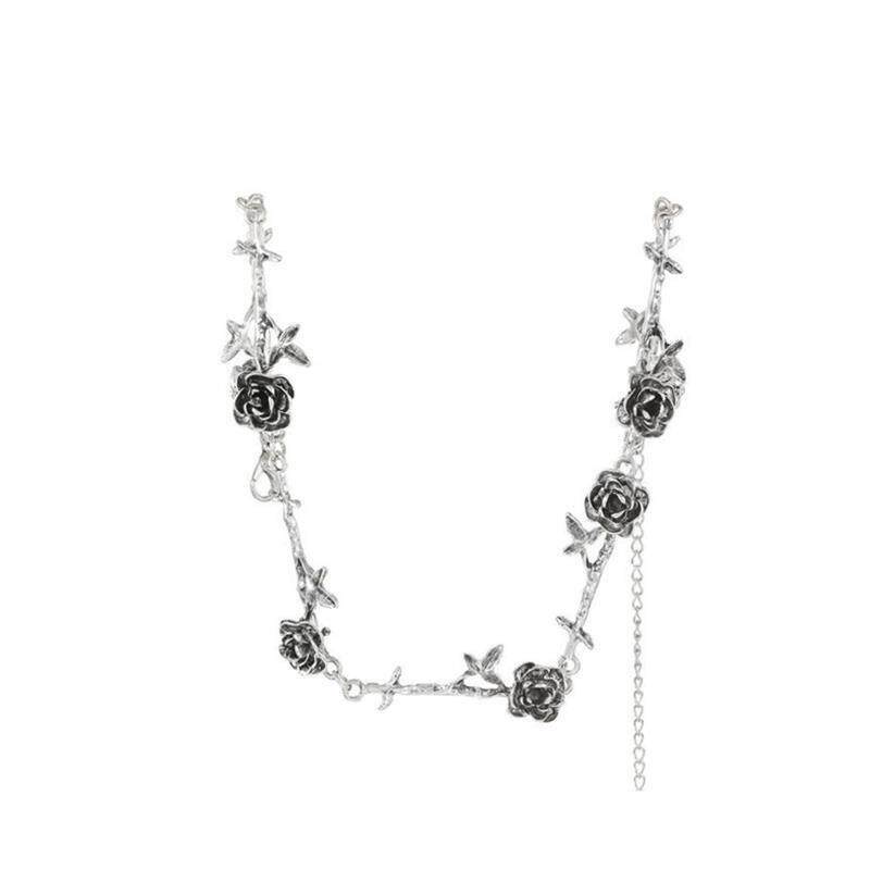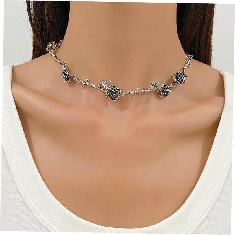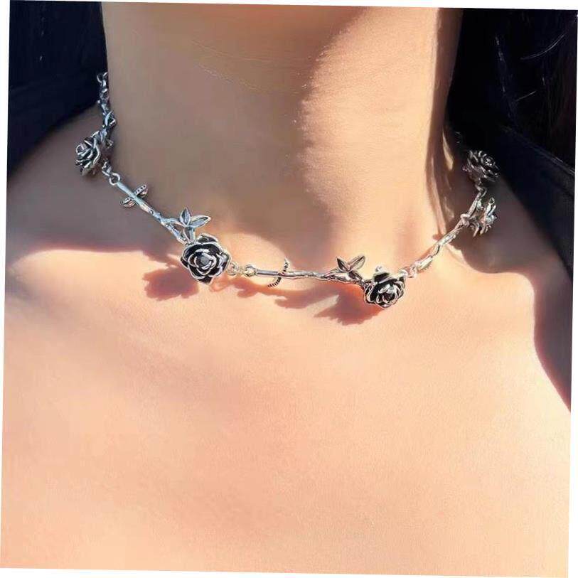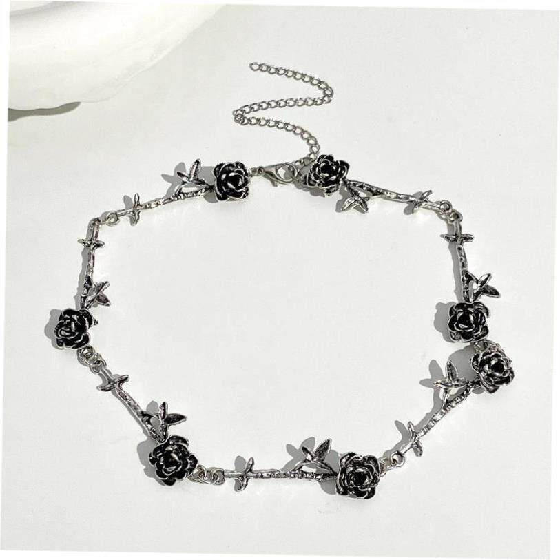 retro black necklace rose neck chain short choker 玫瑰锁骨炼