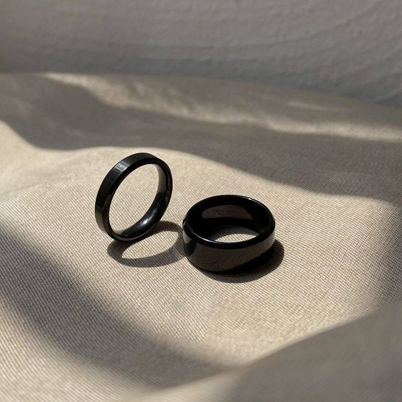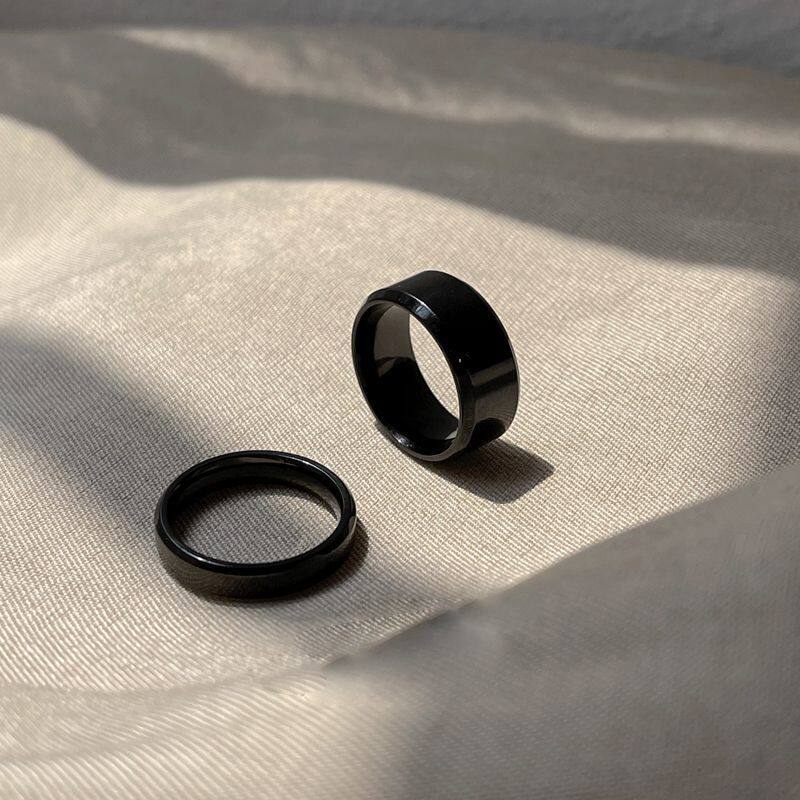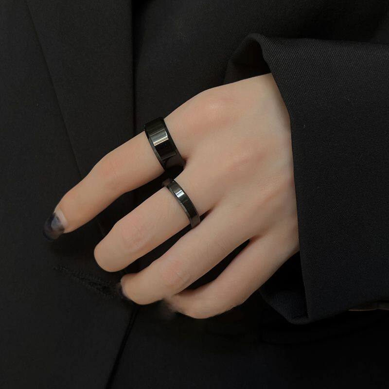 潮酷ins风情侣黑色钛钢不掉色戒指男女小众高级百搭中食指环个性