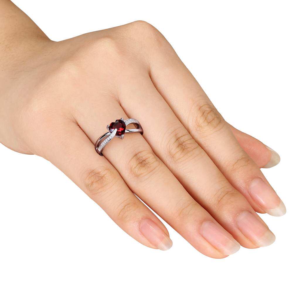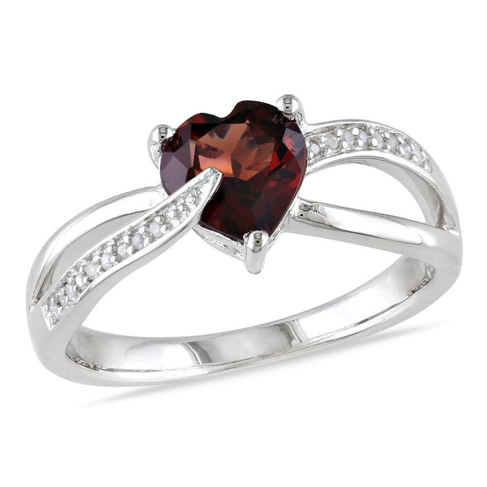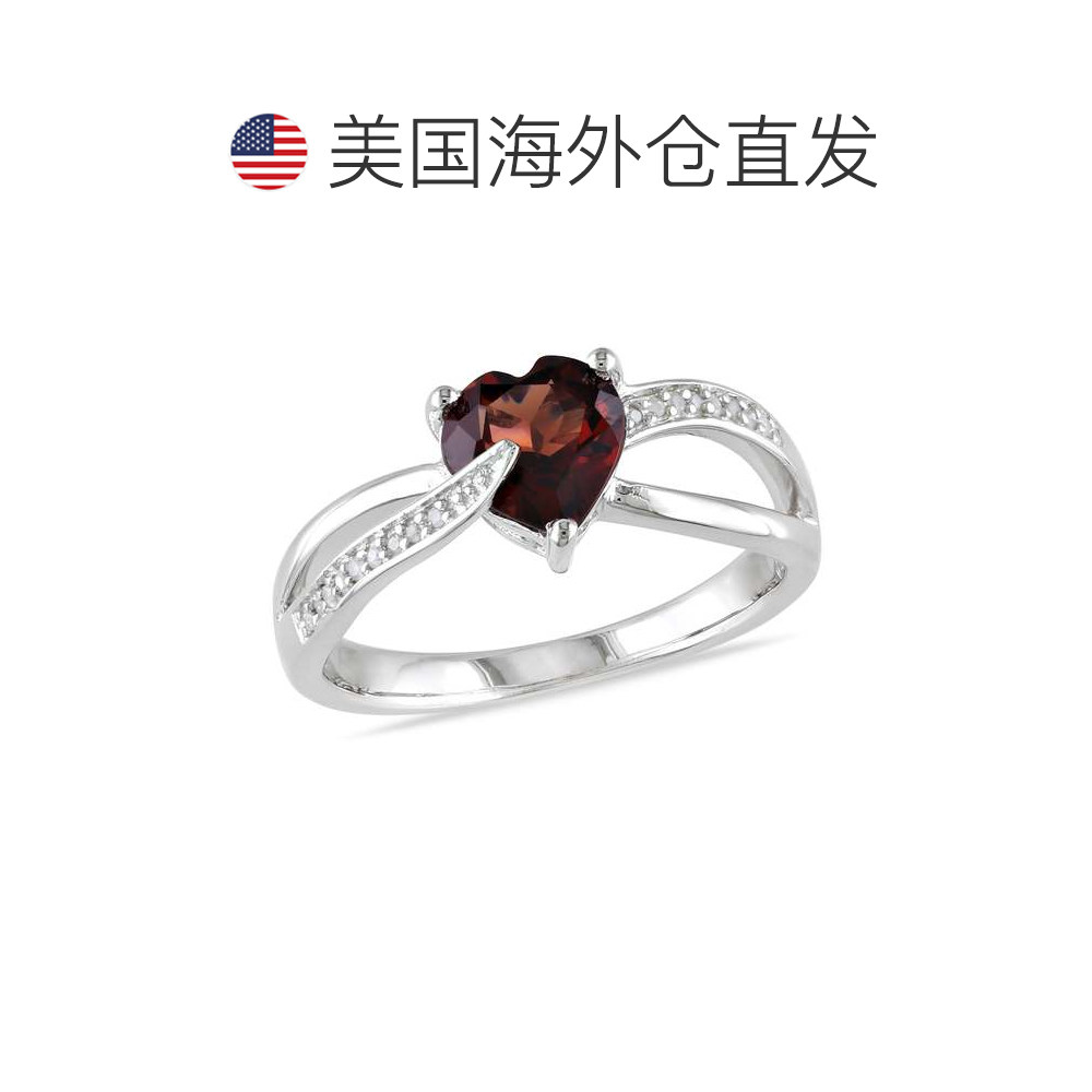 自营 mimi & max925 纯银石榴石和钻石心形交叉戒指 - 红色 美国