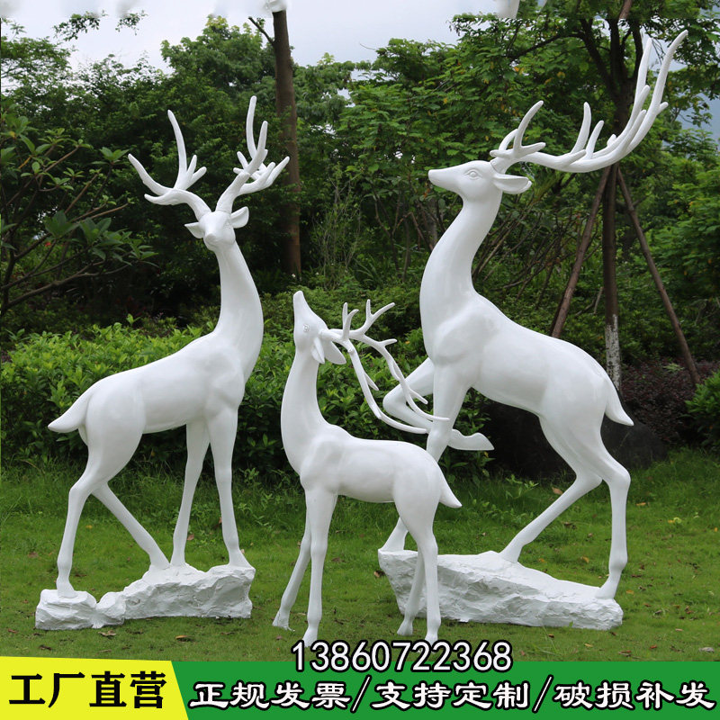 新款玻璃钢白色鹿雕塑仿铜鹿大摆件售楼部园林草坪动物展厅装饰品