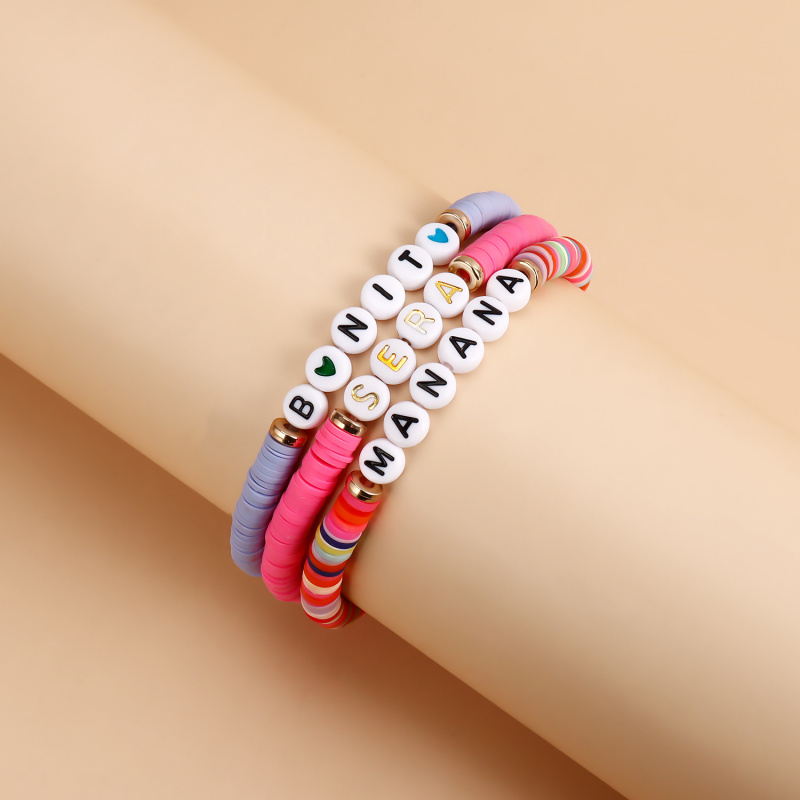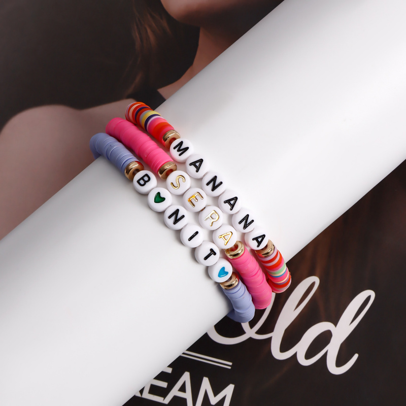 欧美热销彩色软陶字母手链手串可自编字母款式支持单条制作配饰女