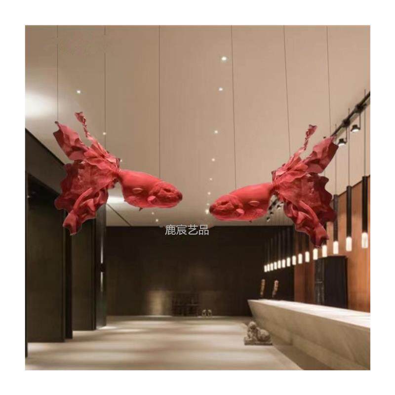 不锈钢抽象金鱼吊饰悬挂雕塑酒店大厅商场会展镂空鱼形挂件定制