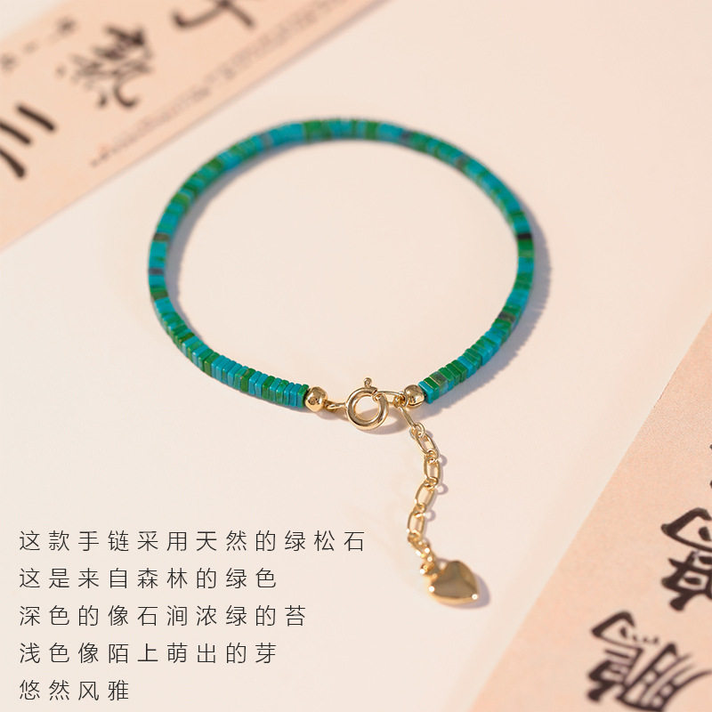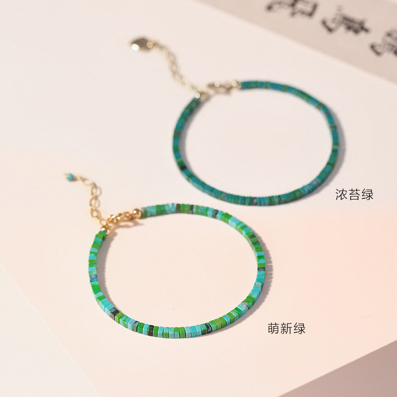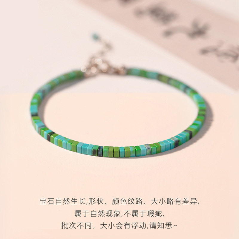 【春之碧色】极细绿松石手链女小众设计复古方形松石清新绿色手饰