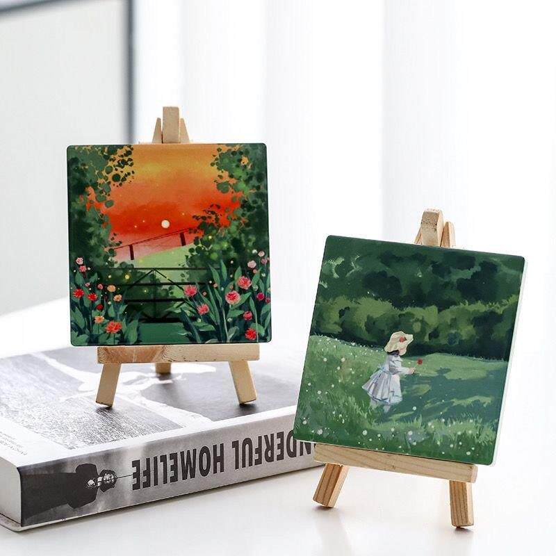 ins小清新学生桌面装饰摆台风景油画插画创意摆件家居饰品小画架