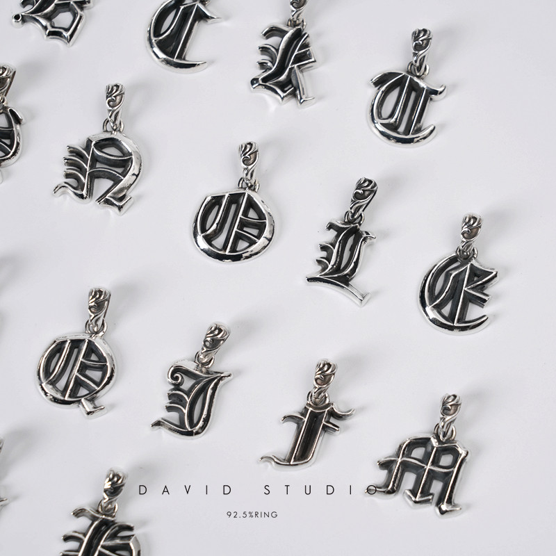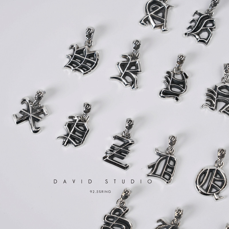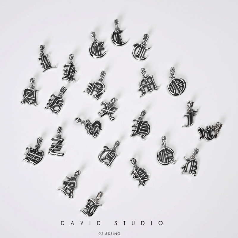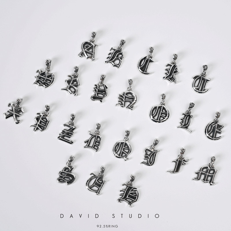 David studio925纯银 哥特英文字母男女款项链吊坠潮流情侣网红