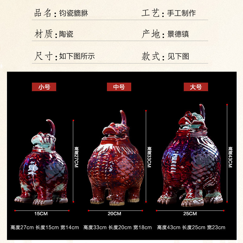 窑变钧瓷天禄貔貅乔迁开业送礼新中式家居客厅玄关大号装饰品摆件