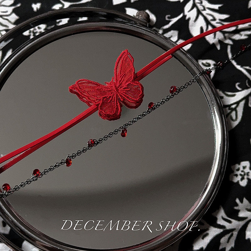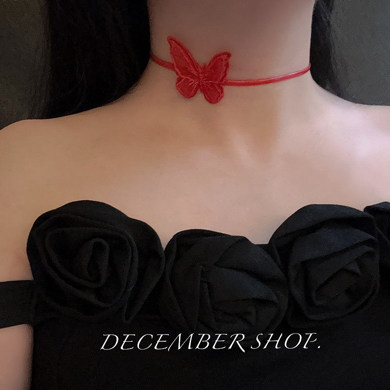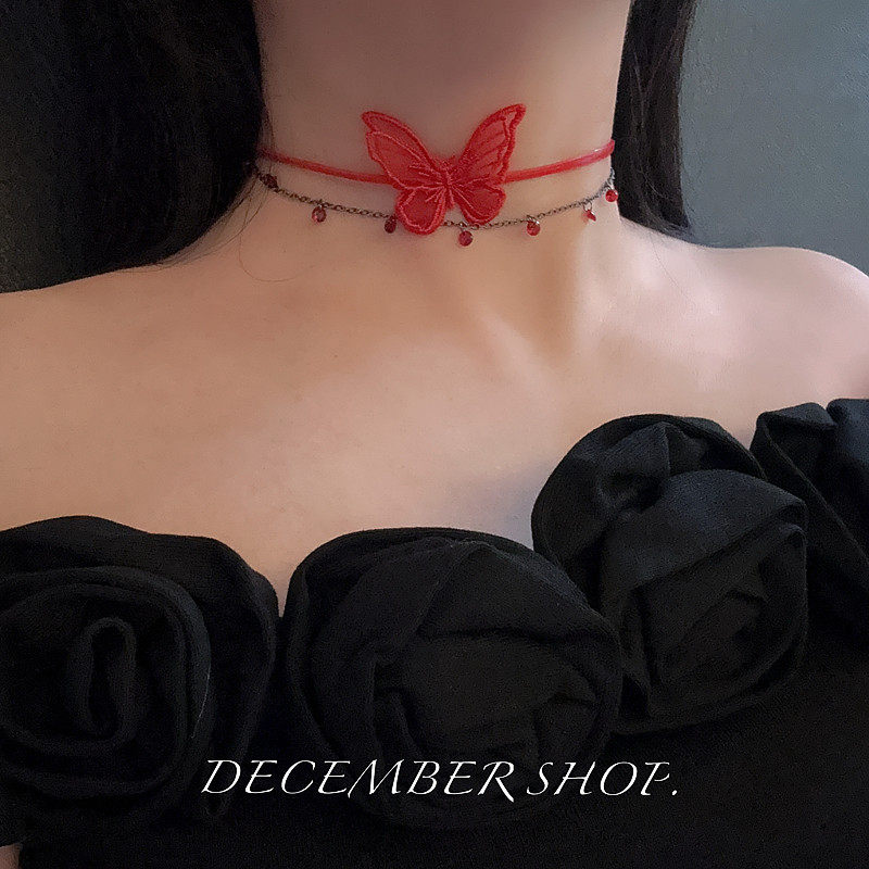 新款红色蝴蝶双层颈环颈带choker锁骨链配饰项链项圈脖子饰品