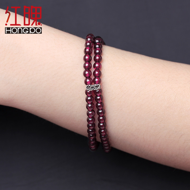 红魄 巴西老矿玫红石榴石手链两圈女人石手串4mm配纯银扣带证书