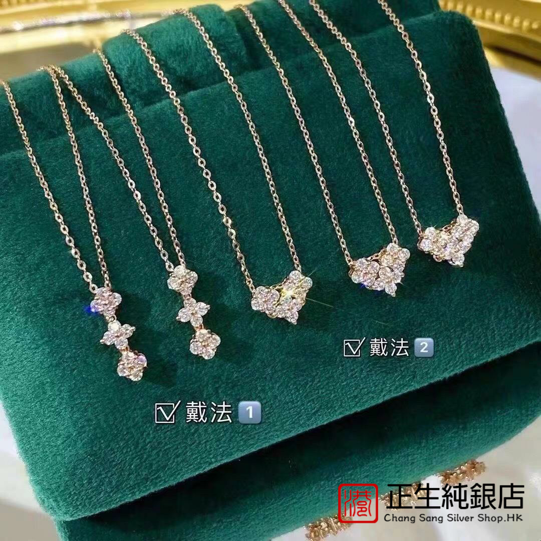 香港正生s925纯银爱心项链一款两戴幸运草锁骨链气质轻奢小众设计