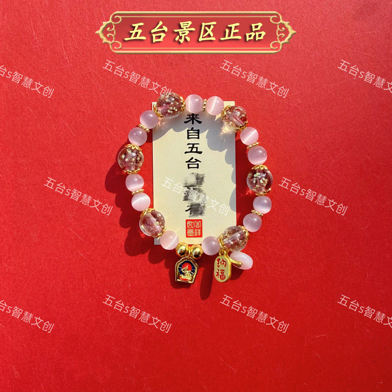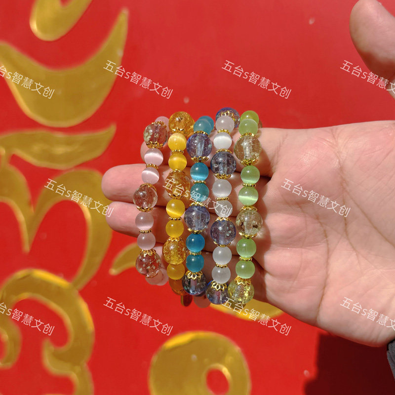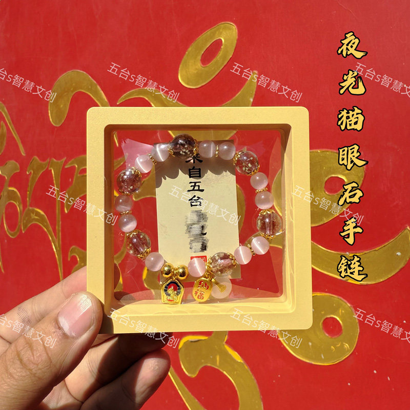 五台景区文殊赐福新中式夜光琉璃猫眼石平安扣金箔手链