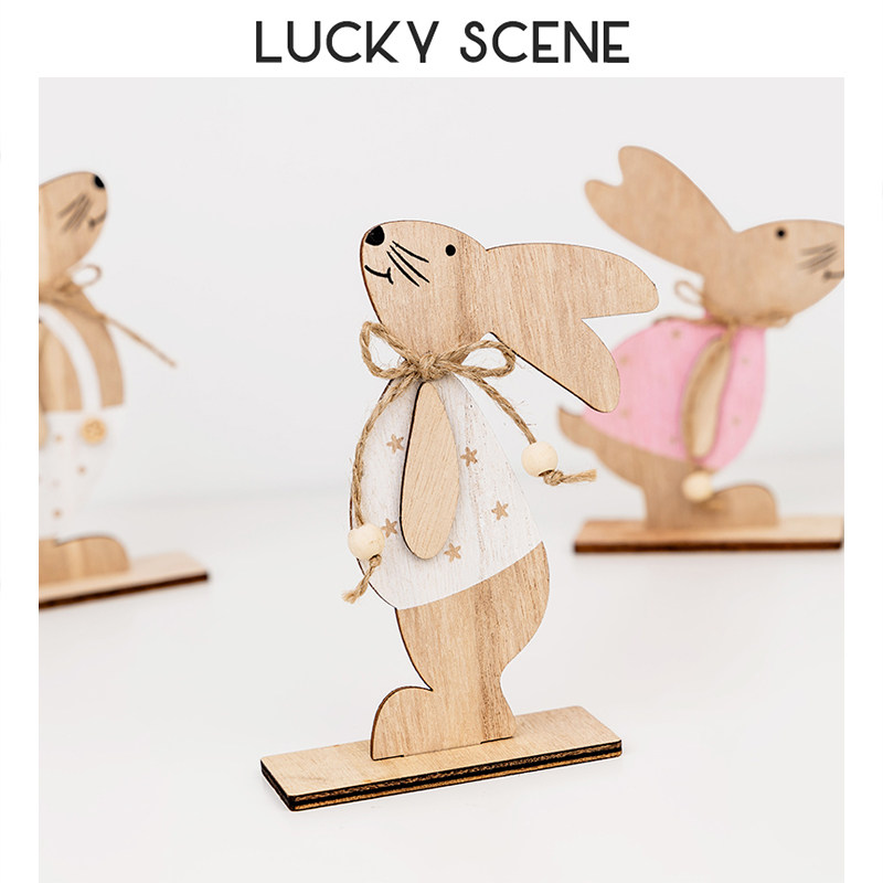 【吉祥道具】木质兔子摆件装饰品创意复活节儿童陈列原木家居生日
